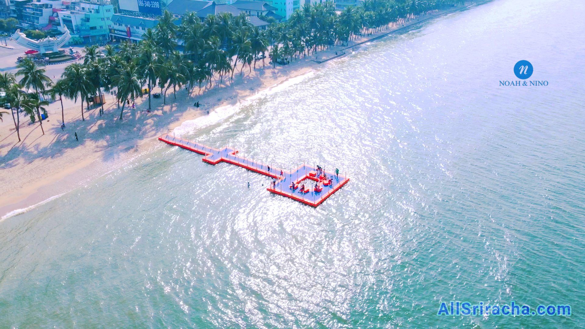 [CR] พาลูกเที่ยว เดินลงทุ่นลอยน้ำชายทะเลบางแสน ชลบุรี l Float buoys on the ocean
