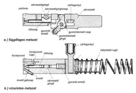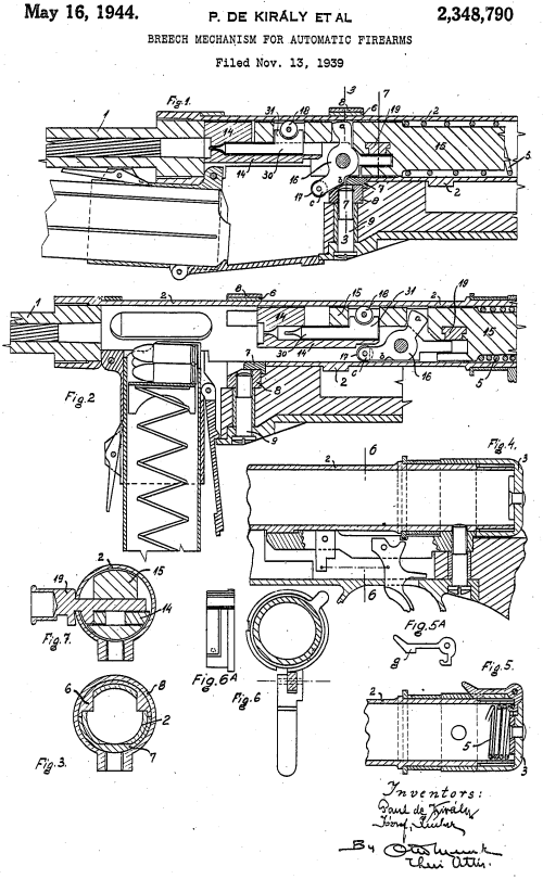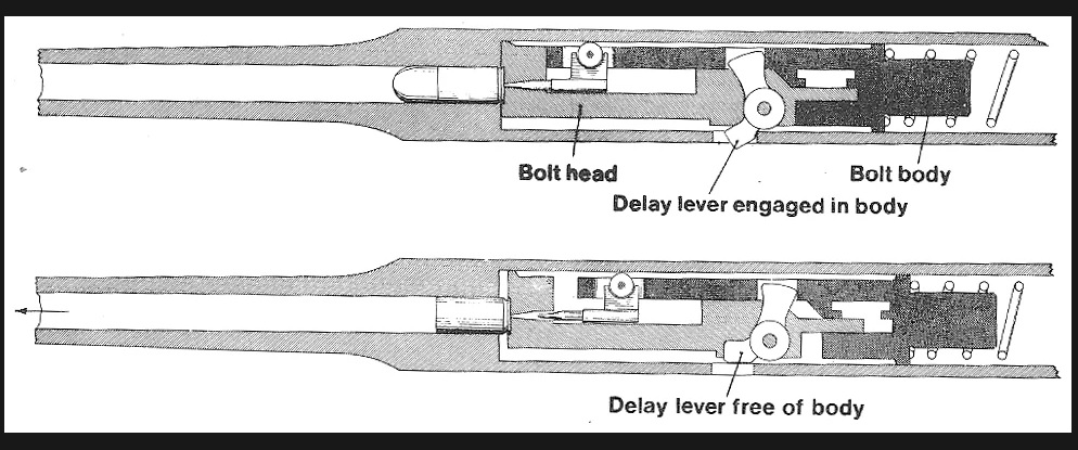 ช่วงกลางยุค1930 วิศวกรชาวฮังการี่ ชื่อ Pál Dedai Király ได้ออกแบบระบบขัดกลอนแบบ Lever-delayed blowback โดยการบริหารกลไกจะมีชิ้นส่วนหลัก 2 ชิ้น ซึ่งระบบอาศัยแรงปฏิกิริยาจากแรงดันในรังเพลิงที่ส่งกระสุนออกไป โดยที่ชิ้นส่วนทั้งสามได้แก่