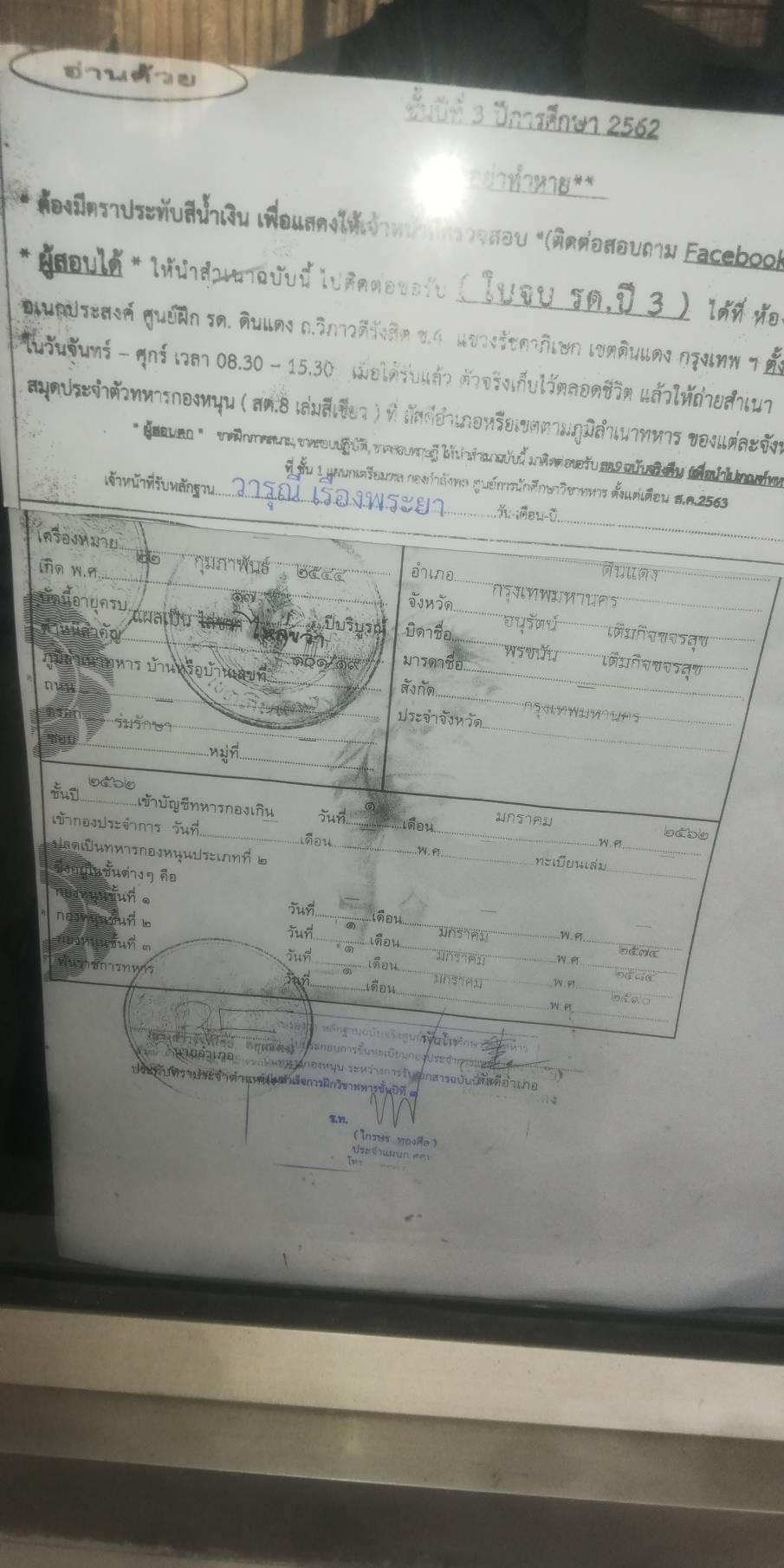 สอบถามครับถ้าใบนี้หายต้องทำอย่างไรครับ จึงจะสามารถรับใบจบ รด.ปี3ได้ครับ