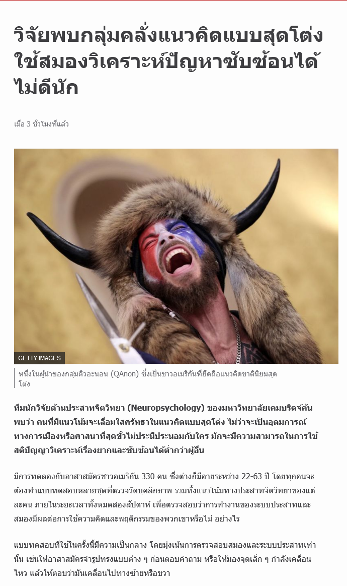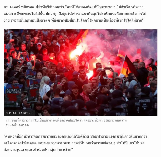 วิจัยพบกลุ่มคลั่งแนวคิดแบบสุดโต่ง ใช้สมองวิเคราะห์ปัญหาซับซ้อนได้ไม่ดีนัก