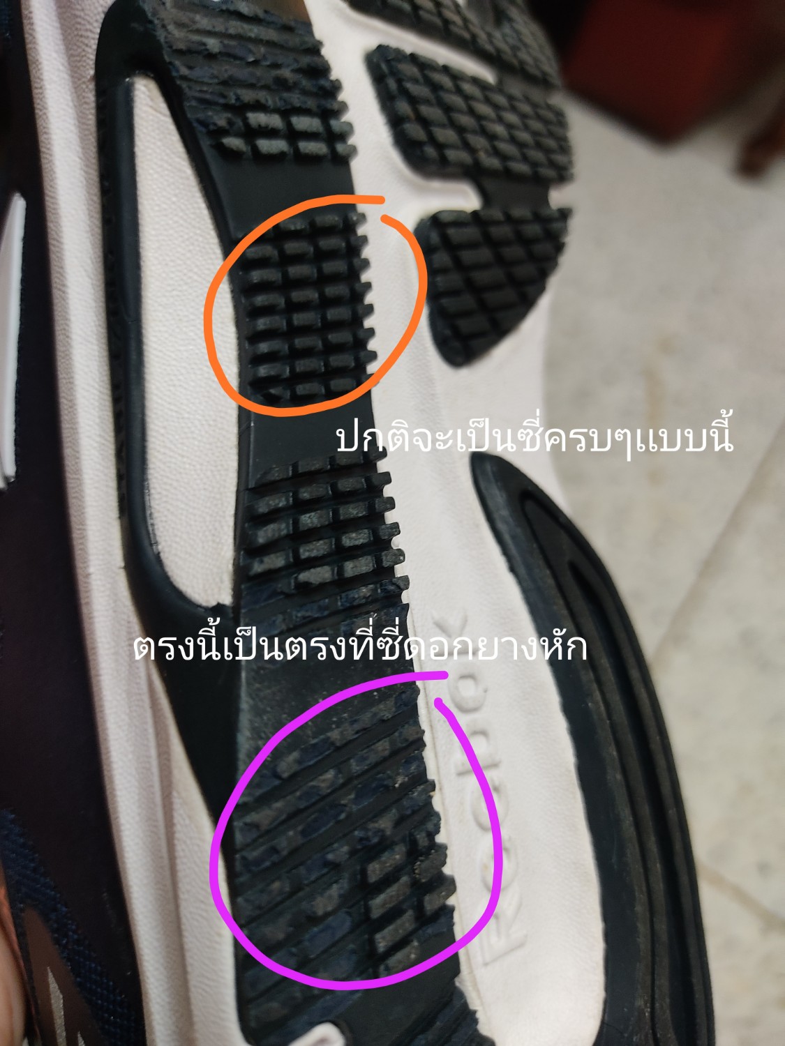 เราได้ไปซื้อรองเท้าวิ่งจาก supersport ใน central มาค่ะ เป็นช่วงลดราคาค่ะ เเล้วทีนี้เราได้มีใส่ออกไปเดินเเละวิ่งเบาๆหน้าบ้าน1วัน ระยะทางไม่เกิน 2 กิโลเมตร พบว่ารองเท้าลื้นมากไม่เกาะพื้นถนน วิ่งเเล้วไถล(ทั้งๆที่เป็นรองเท้าวิ่ง) พอเรากลับมาดูที่บ้านพบว่าพื้นรองเท้าตรงที่เป็นดอกยางมันหักบางซี่ค่ะ(เหมือนว่าเป็นรองเท้าลดราคาเก็บมานาน พื้นมันไม่ยืดหยุ่นเเล้ว มันน่าจะกรอบเเล้วตามความคิดเราพอใส่นิดหน่อยเเล้วลายดอกยางหักเลยค่ะ) ป้ายราคาเราตัดไปเเล้วเเต่ยังเก็บไว้อยู่พร้อมใบเสร้จกับกล่องรองเท้าค่ะ ปล.อันนี้เพิ่งซื้อมาไม่ถึง7วันนะคะ รบกวนพี่ๆเเนะนำหน่อยค่า กรณีเเบบนี้เราสามารถไปเคลมหรือเปลี่ยนได้มั้ยคะ