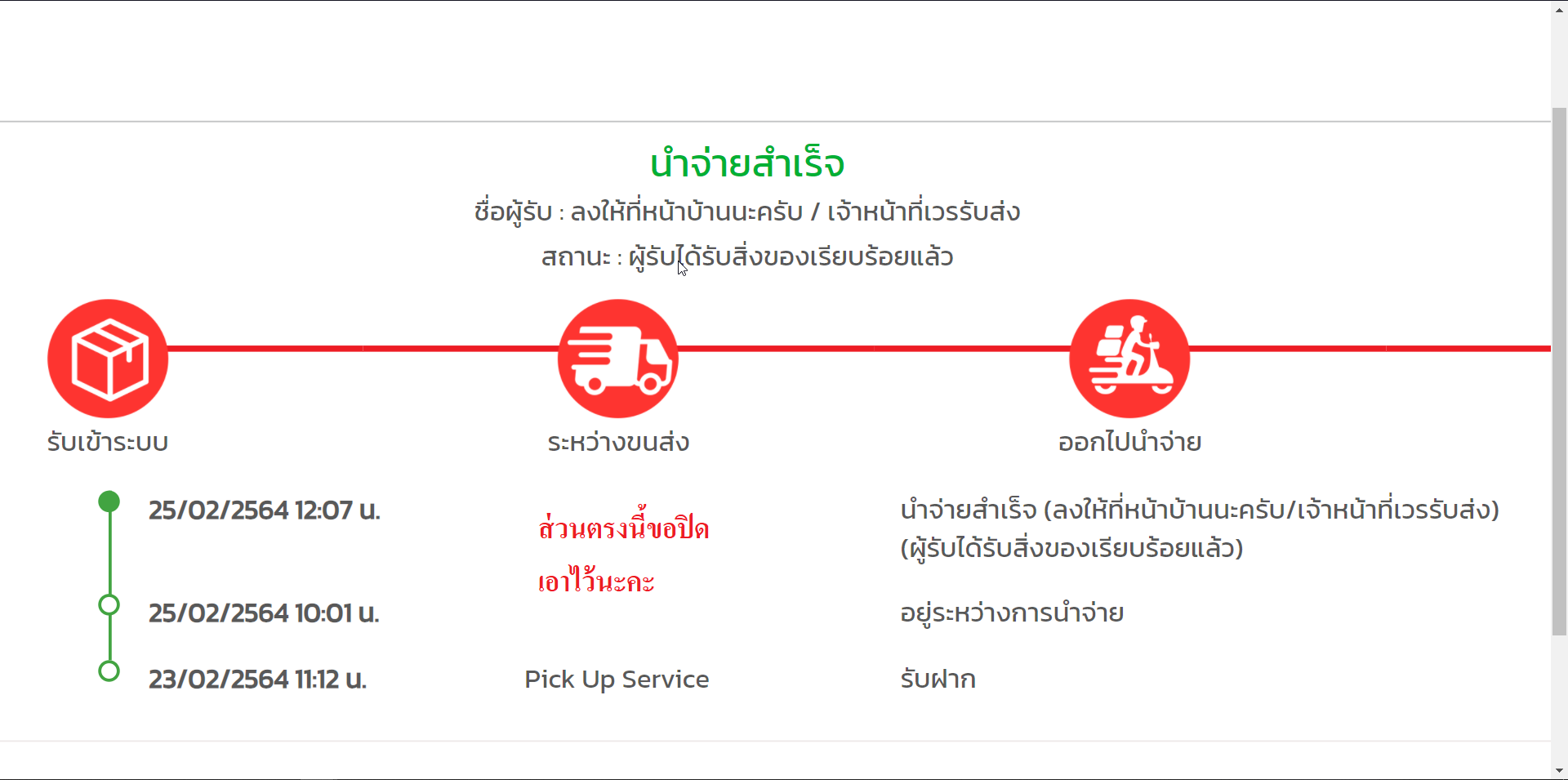 โดยวันที่เราตั้งกระทู้เราได้รับรู้ว่าวันนี้ของได้หายไป เราได้สั่งของมาส่งที่บ้านซึ่งเป็นอารมณ์หมู่บ้านจัดสรรที่เป็นบ้านทาวน์เฮ้าส์ 2 ชั้นติดกัน ทางไปรษณีย์ได้นำของมาส่งวันที่ 25/02/2564 12:07 น. ตามเวลาที่แจ้งในเว็บไซต์ โดยไม่มีใครอยู่บ้าน ไม่มีรถ ประตูหน้าบ้านล็อค(เราไม่ได้ล็อครั้วบ้านนะคะ) ทางเจ้าหน้าที่เวรรับส่งกลับบอกว่า "ลงให้ที่หน้าบ้านนะครับ" ตามที่เว็บได้แจ้งเอาไว้ และของส่งสำเร็จ จนวันนี้วันที่ 27/02/2564 เวลา 02.49น. เรายังไม่เห็นพัสดุเราเลย เราไปถามยามหน้าหมู่บ้านไว้ เผื่อมีตรงนั้นก็ไม่มี วันพรุ่งนี้เราจะโทรไปแจ้งทางไปรษณีย์ให้รับทราบกับเรื่องที่เกิดขึ้น และ อาจจะถามข้างบ้านดู หลังจากนั้นจะทำการไปสโมสรของหมู่บ้านเพื่อขอดูกล้องวงจรปิด