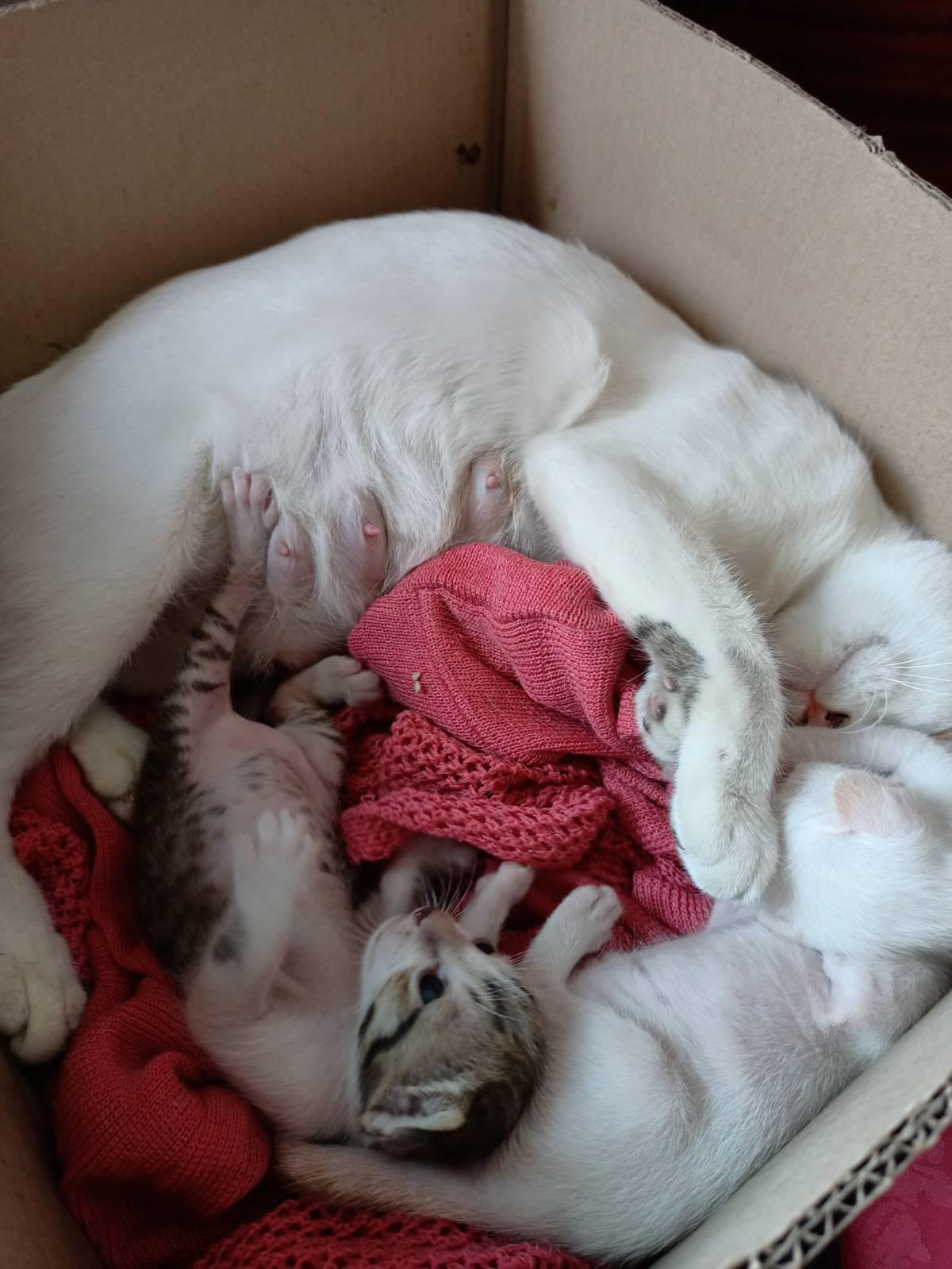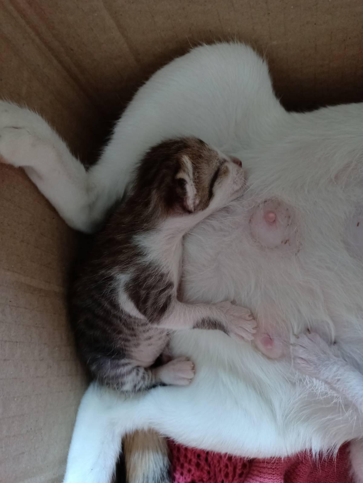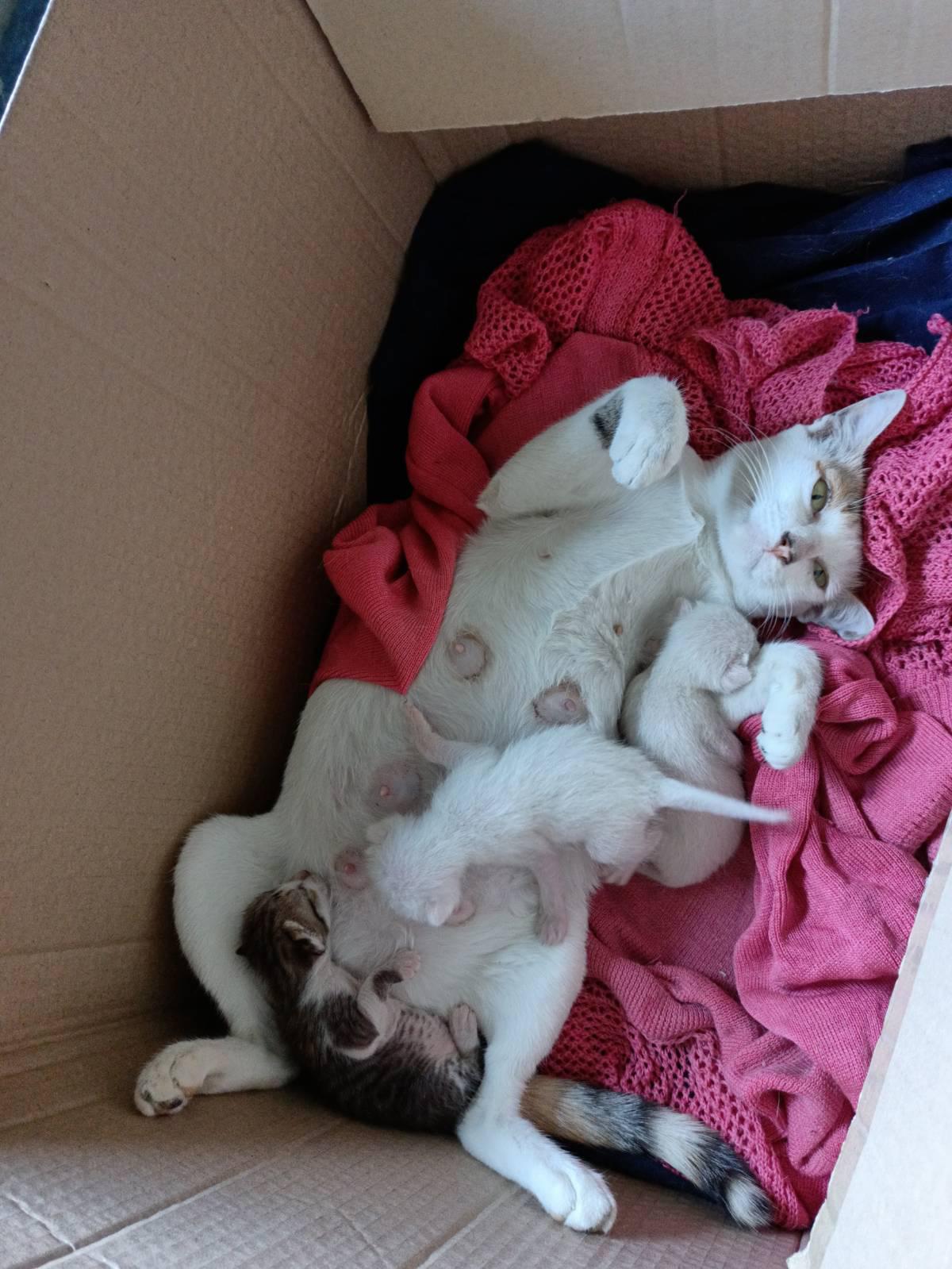 แมวจรจัดมาอยู่ด้วยผ่านไป 4 เดือนท้องแล้วเพิ่งคลอดลูกได้ 3 อาทิตย์