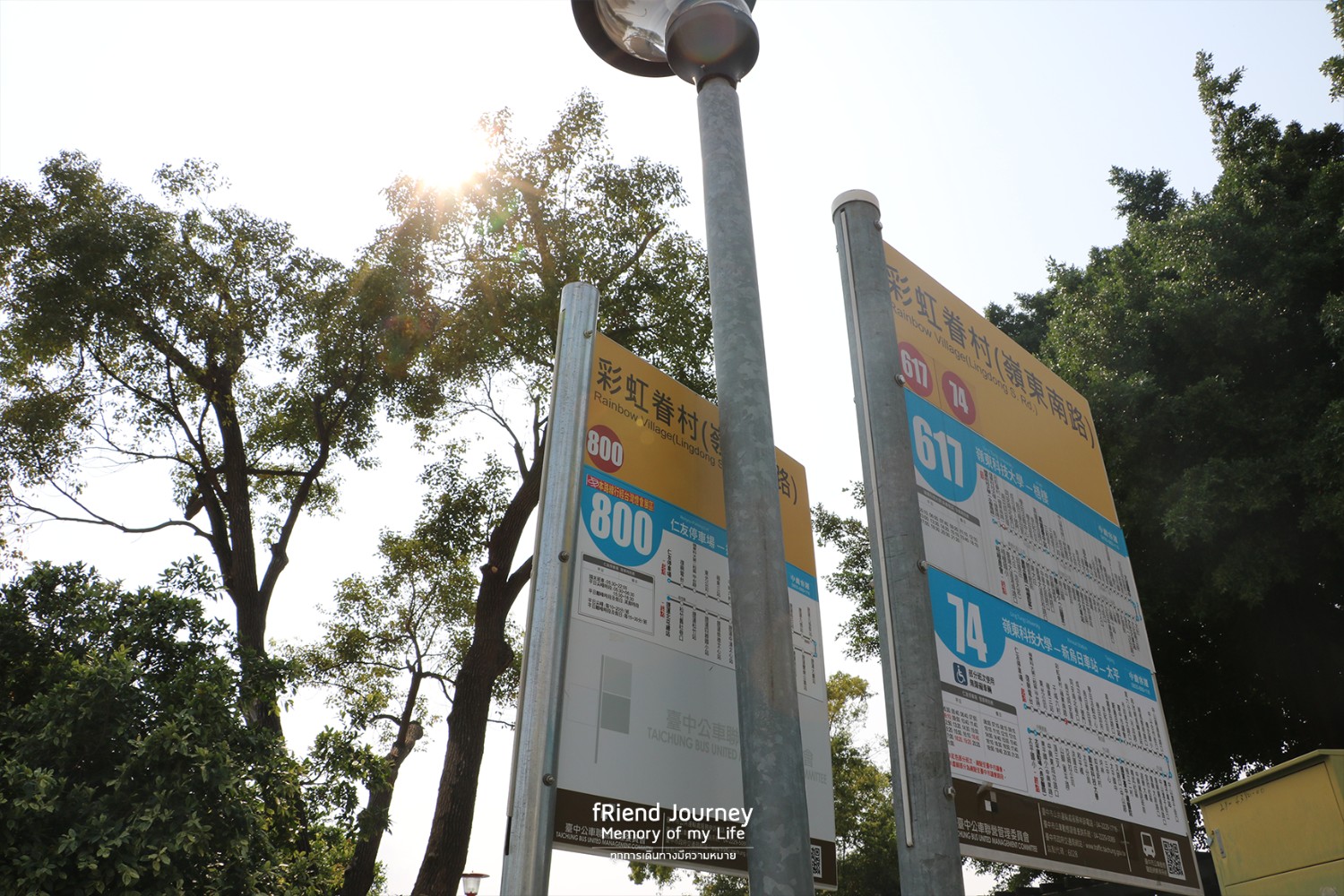 หลังจากลงเขามาสถานที่ต่อไปก็คือ หมู่บ้านสายรุ้ง โดยเดินทางไปขึ้นรถที่สถานีรถไฟไถจง ขึ้นรถฟรีไปหมู่บ้านสายรุ่ง