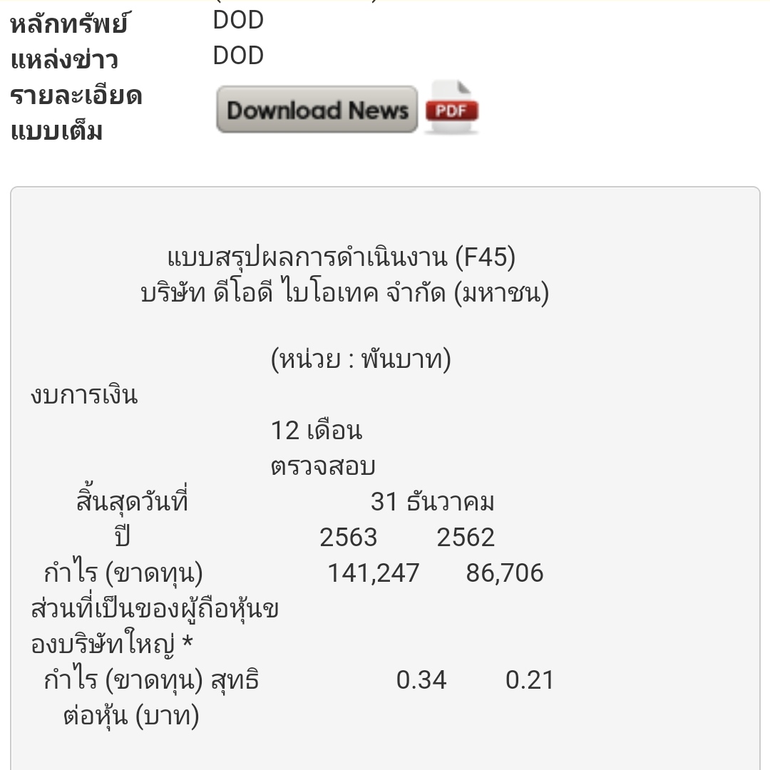สอบถาม dod กำไรโตแต่ตั้งด้อยค่า อะไรตั้งเยอะหรอครับ