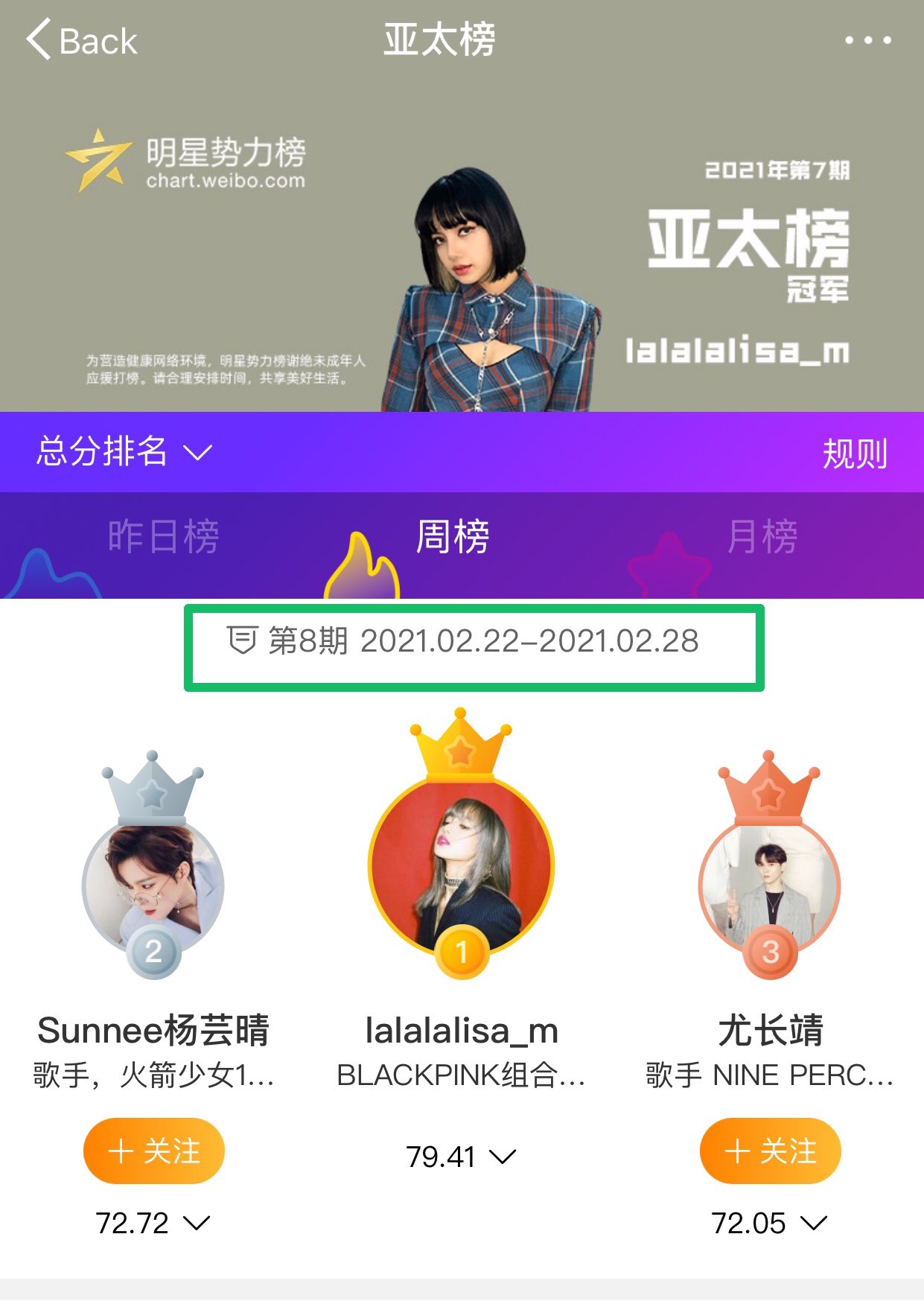 🌟LISA🌟 ครองอันดับ 1 ของ Weibo Superstar Power Ranking (ภูมิภาคเอเชียแปซิฟิก) ประจำเดือนกุมภาพันธ์