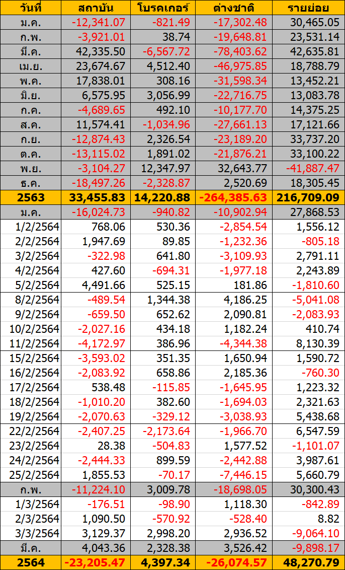 Sinthorn Summary 3/3/2564 : ต่างชาติซื้อสุทธิ 2,936.52 ลบ.