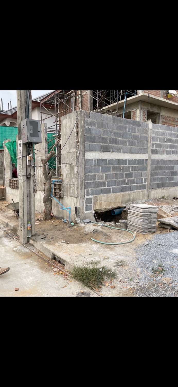 พอดีพื้นบ้านกับรั้วบ้าน มันวางอยู่บนคานที่ลงเสาเข็มลึก19เมตร แต่มันมีช่องใต้คานบ้าน สูงกว่าที่ดินข้างเคียงประมาณ 30-50เซ็น