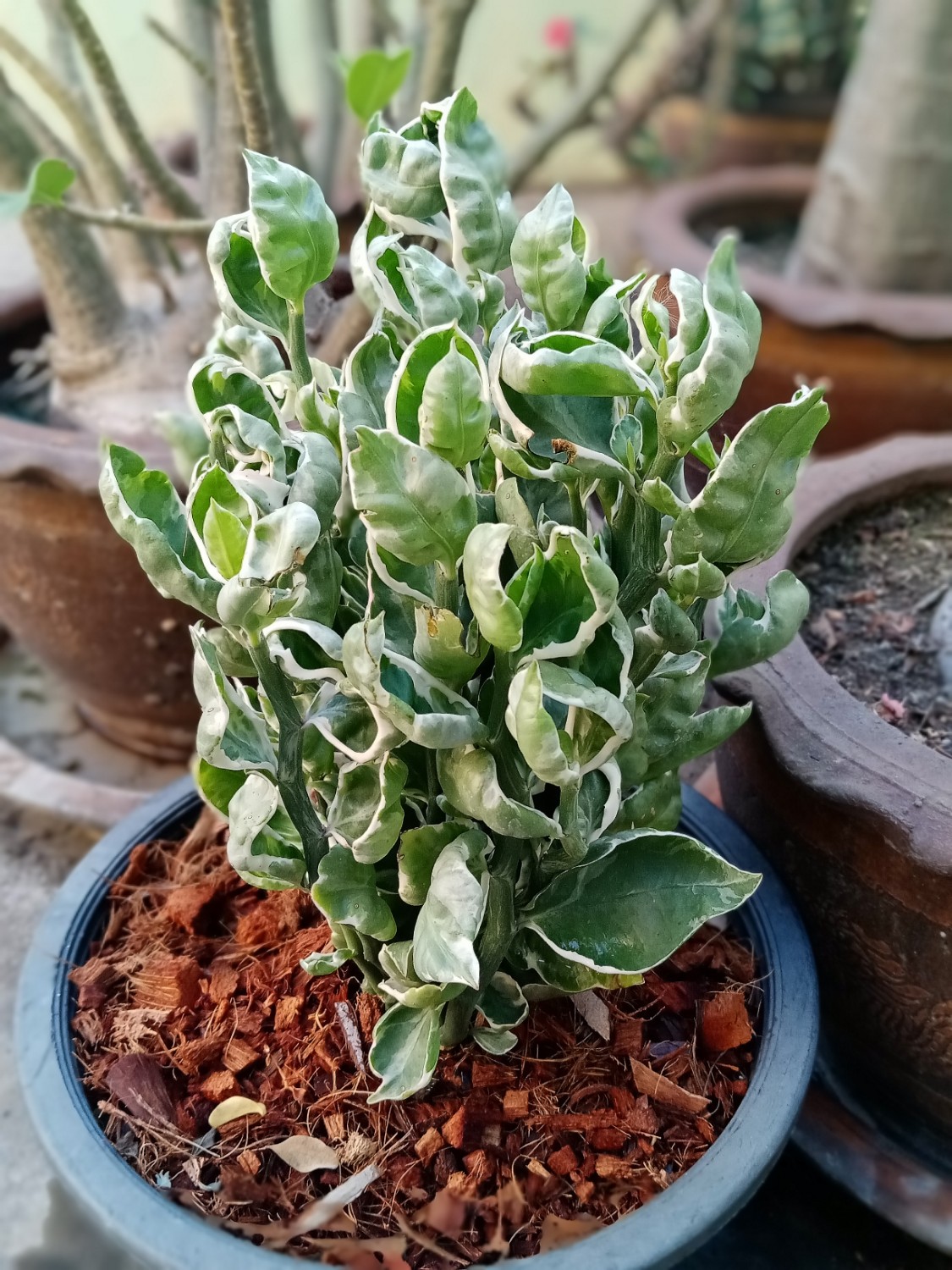 สวัสดีครับ รบกวนถามชื่อต้นไม้หน่อยครับ ต้นไม้ที่อยู่ในกระถางสีดำ 2 ต้น คือ ต้นเดียวกันครับ ขอที่ร้านแถวบ้านมาปลูกครับ เขาก็ไม่รู้ว่าเธอชื่ออะไร