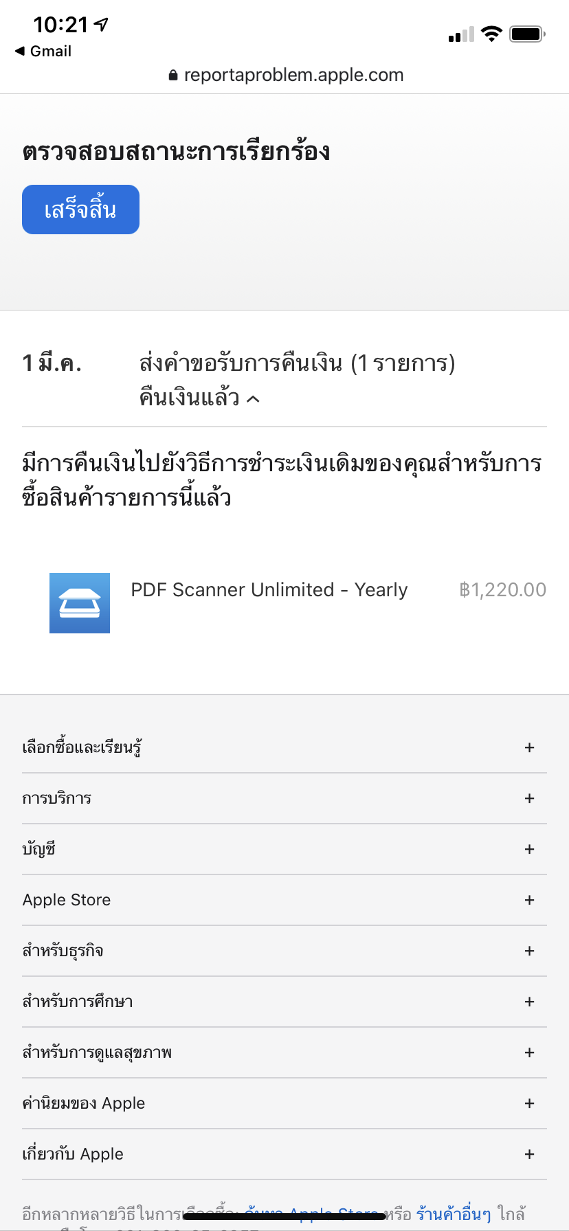 ขอคืนเงินจาก Apple แล้วขึ้นว่าได้เงินคืนแล้ว แต่เงินยังไม่เข้าทำไงดีครับ