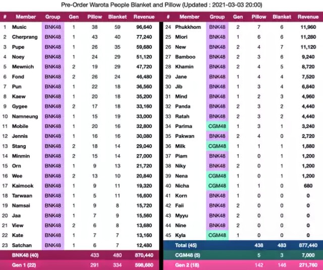 ยอดขาย ผ้าห่ม ปลอกหมอน BNK48 เบื้องต้นมาแล้ว (พร้อมของ CGM48 ไว้เทียบด้วย)