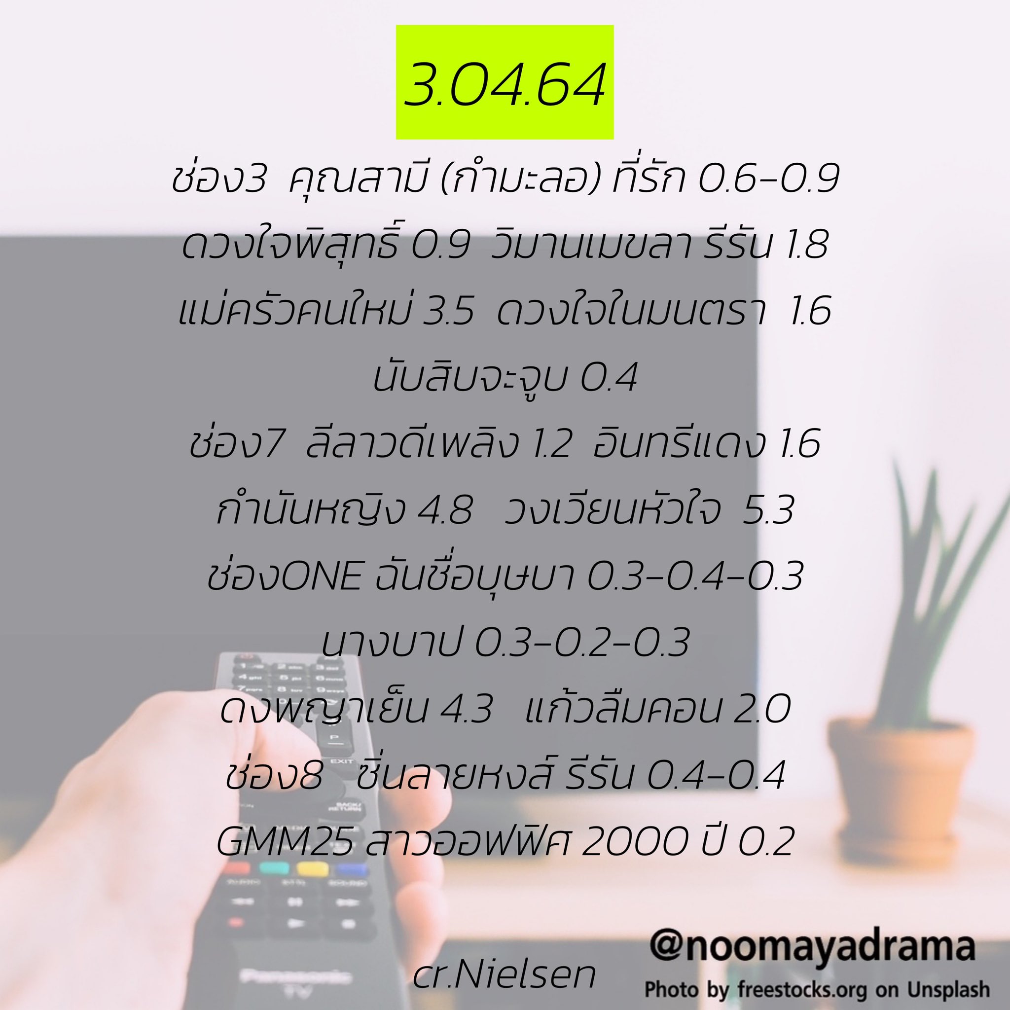 เรตติ้งละครประจำวันที่ 17 มีนาคม 64