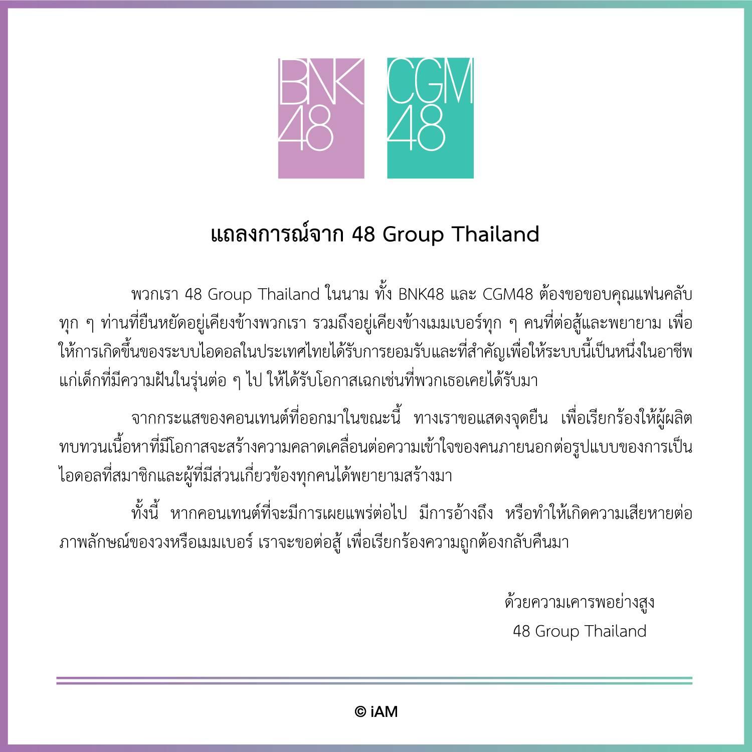 แถลงการณ์จาก 48 Group Thailand