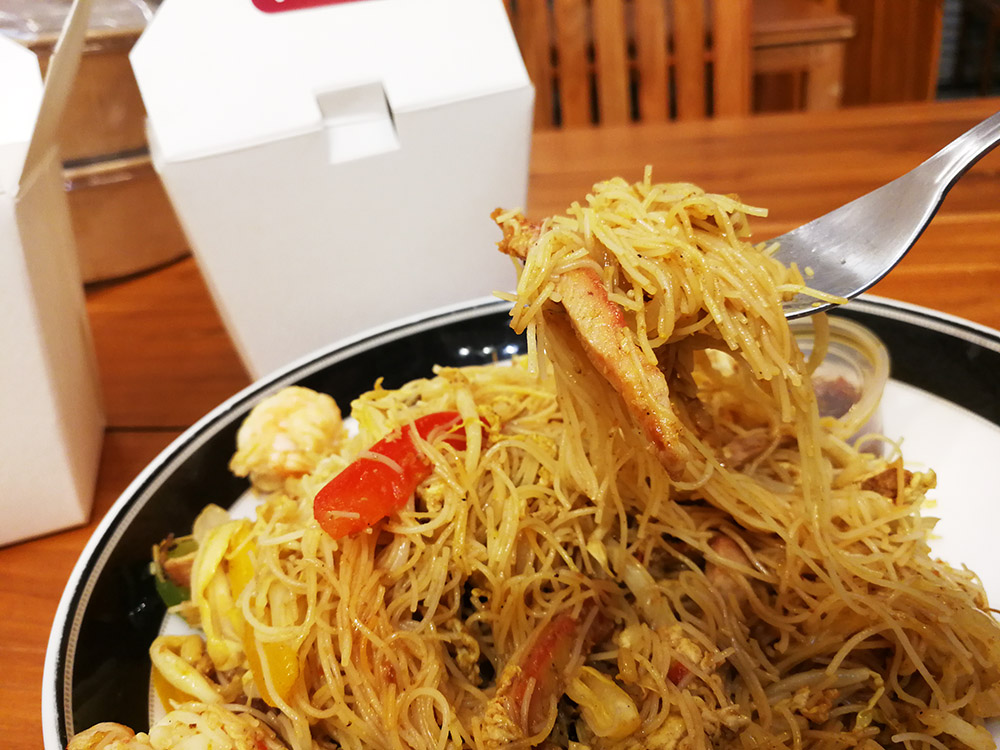 มาเริ่มที่เมนูแรกครับ เป็นเมนูเส้น ชื่อว่า เส้นหมี่ผัดสิงคโปร์ ตัวนี้เสริฟมาคู่กับซอสพริกเซี่ยงไฮ้ อารมณ์เหมือนซอสน้ำพริกเผา หอมๆเผ็ดๆ เมนูนี้มีความหอมใช้ได้เลย เส้นผัดรวมกับหมูแดง และกุ้ง ในสัดส่วนที่พอดี โดยรวมแล้ว หอมๆ มันๆ เผ็ดๆนิดๆ ดูแปลกใหม่กินได้ไม่เบื่อครับ