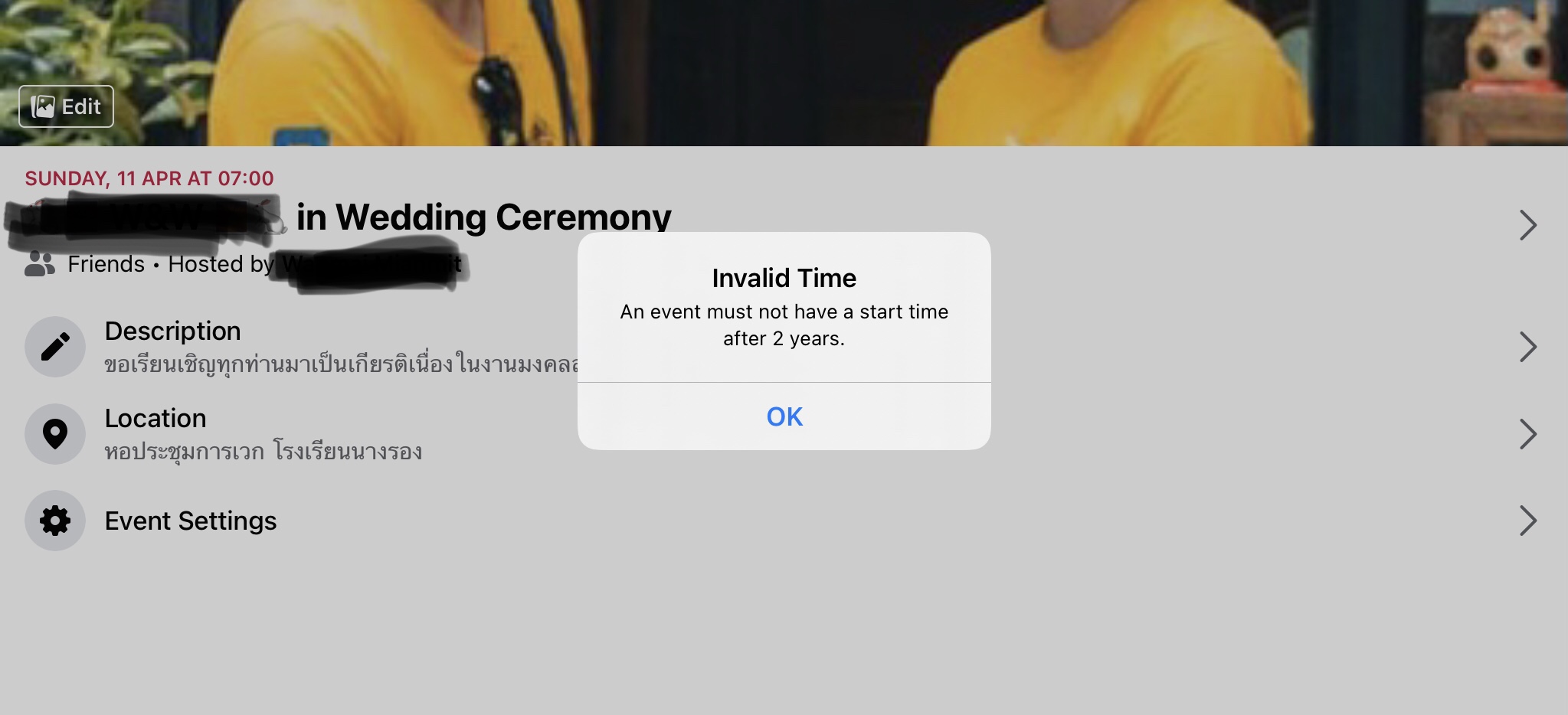 ขออนุญาตสอบถามครับ ตั้ง Event ใน Facebook ไม่ได้ครับ