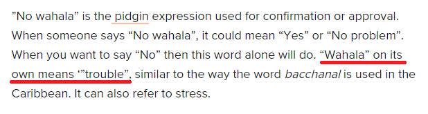 ในชื่อเรื่องเป็นการประสมคำ ระหว่างคำว่า นมัสเต(นมัสการ) ซึ่งเป็นคำทักทายของชาวฮินดูในอินเดีย(แถบหิมาลัย)และเนปาล และคำว่า วาฮาลา ซึ่งเป็นคำในภาษาไนจีเรียน ที่แปลว่า ปัญหา(trouble) ดังนั้นถ้าเกิดอยากจะพูดว่า โน พร็อมแพลม ที่แปลว่าไม่มีปัญหาแบบบ้านเราก็ต้องบอกเป็นภาษาไนจีเรียนว่า No Wahala อุบร๊ะ!! จากหนังเรื่องนี้ทำให้ได้เรียนรู้ภาษาไนจีเรียนด้วยนะนี่ แม้จะน้อยกว่าธุลีปลายก้อยก็ตาม
