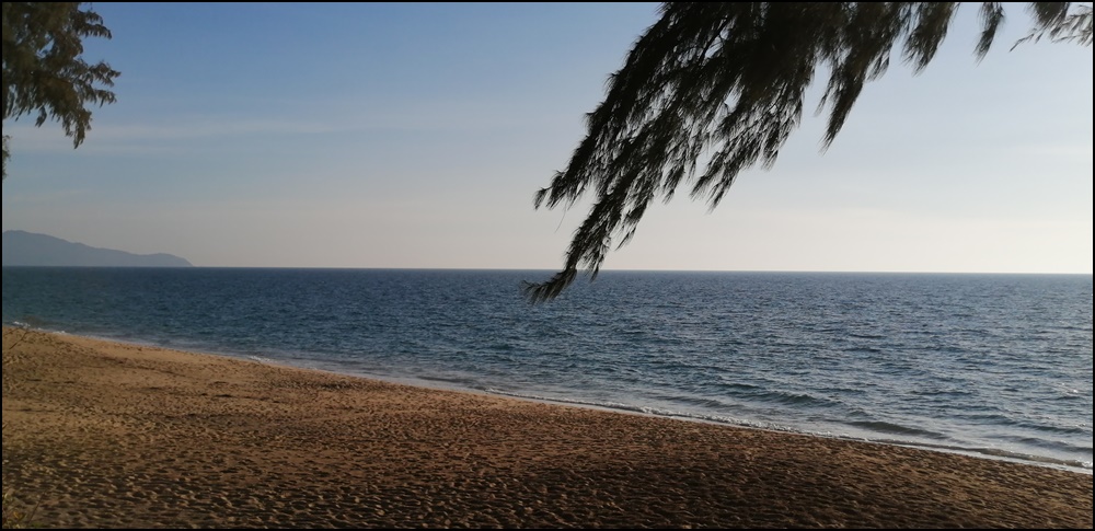 มีสัญลักษณ์ธงแดงปักอยู่ทั่วไปตลอดแนวชายหาด ทรายค่อนข้างหยาบออกสีส้ม ไม่ได้ขาวละเอียดเหมือนทรายบนเกาะเล็กๆ ในทะเลอันดามันอื่น (เช่นหมู่เกาะพีพี) เจ้าหน้าที่ของโรงแรมแจ้งว่าไม่ปลอดภัยในการลงไปเล่นน้ำชายหาดเนื่องจากหาดเมื่อห่างฝั่งออกไปจะมีความชันมาก หาดไม้ขาวหันรับแสงอาทิตย์ทางทิศตะวันตก มันจึงเป็นจุดชมวิวพระอาทิตย์ตกอีกแห่งของเกาะ เย็นวันที่ 2 ของทริป (23/2/64)