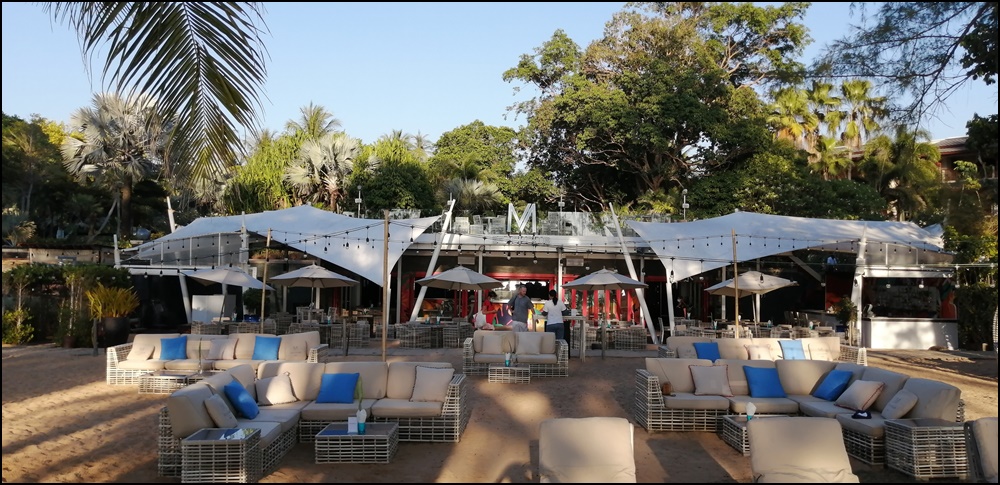 เราได้มีโอกาสเข้าไปนั่งในร้านเครื่องดื่มริมหาดซึ่งอยู่ในโรงแรมระดับห้าดาวอีกแห่งที่ตั้งอยู่ตรงข้ามกับโรงแรมที่เราพัก - M Beach Club ณ โรงแรม JW Marriott Phuket Resort & Spa