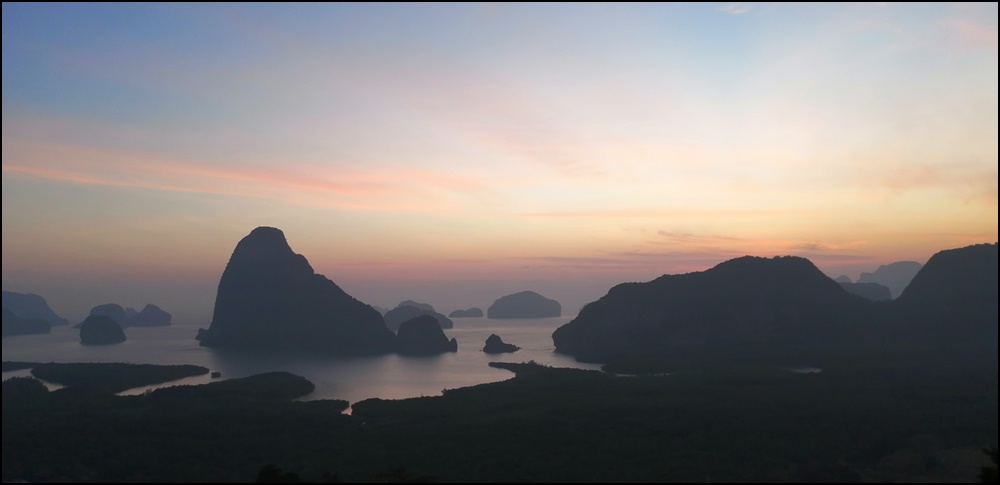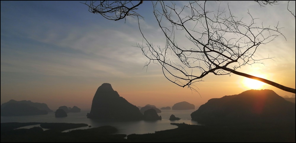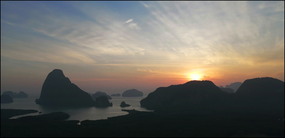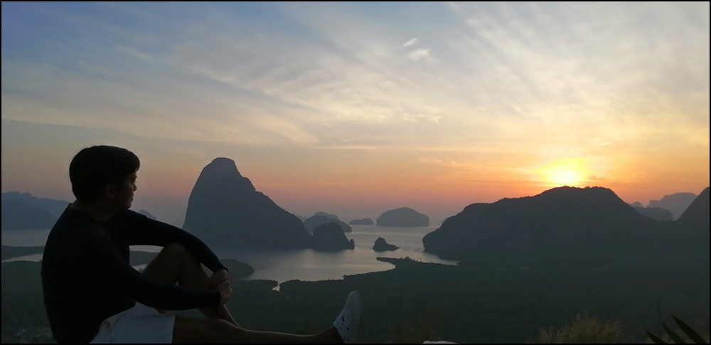 พระอาทิตย์ขึ้นที่อ่าวพังงา บนจุดชมวิวเสม็ดนางชี