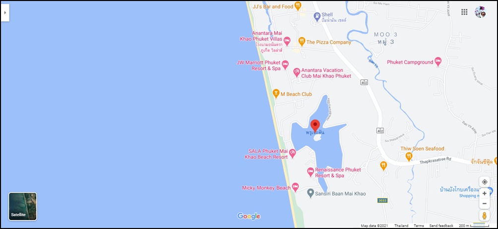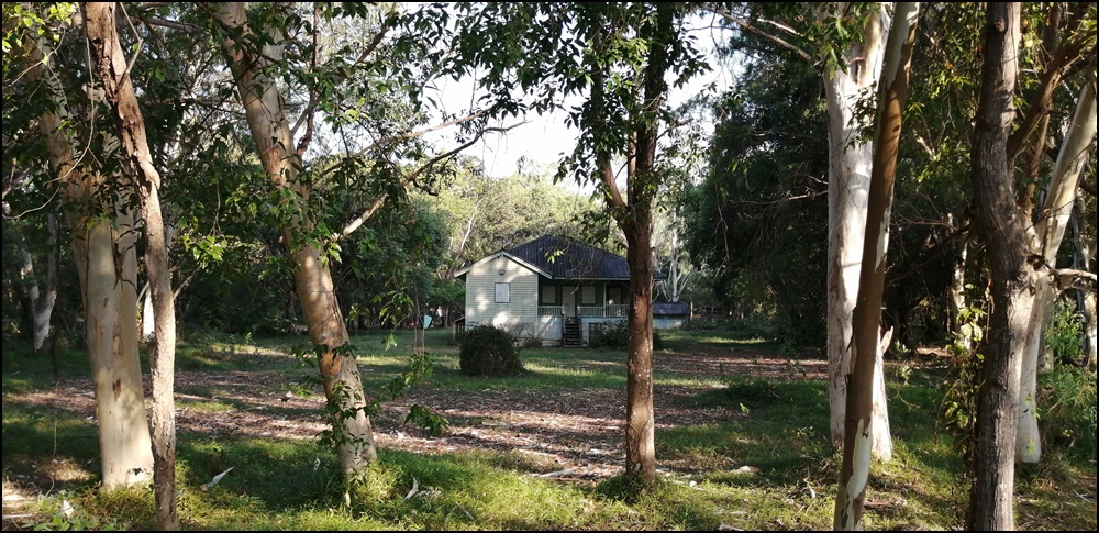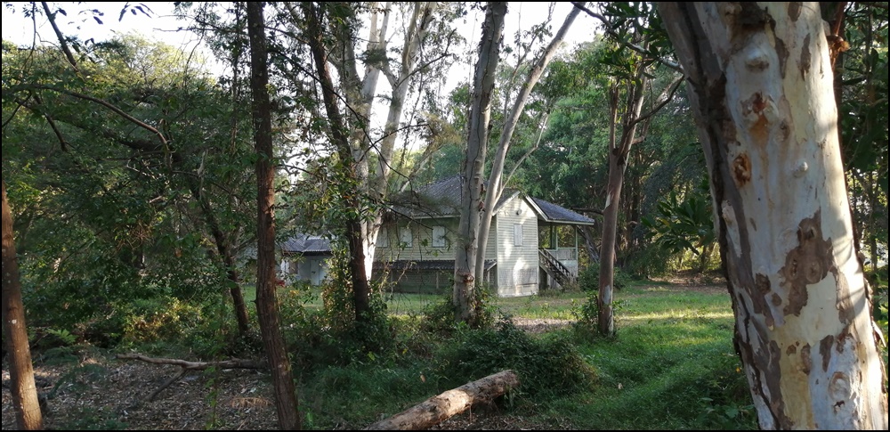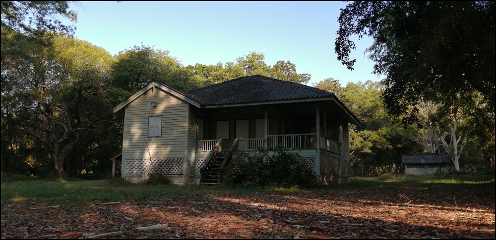 มันมีบ้านอยู่หลังนึง โดยถ้าเราขี่จักรยานไปตามทางรอบพรุ เมื่อเส้นทางค่อนไปทางหาดไม้ขาวแล้ว ขวามือ (ฝั่งที่ไม่ใช่ในพรุ) จะมีบ้านโบราณอยู่หลังหนึ่ง เป็นบ้านแบบใต้ถุนสูงโดยชั้นใต้ถุนไม่ได้เปิดโล่งเพียงแค่ปิดไว้ด้วยไม้แบบที่มีช่องให้ลมผ่านได้ บันไดคอนกรีตหนาใหญ่ ชั้นบนมีลักษณะเป็นห้องปิดทึบ หลังคาทรงปั้นหยาหน้าจั่ว ตัวบ้านทาสีเขียวส่วนหน้าต่างสีขาว อาจเป็นบ้านเก่าอายุหลายสิบปีของเจ้าของพื้นที่เดิม โดยอาจถูกปรับปรุงให้ยังคงสภาพเดิมอยู่อย่างต่อเนื่อง ปกคลุมและล้อมรอบไปด้วยต้นยูคาลิปตัสขนาดใหญ่