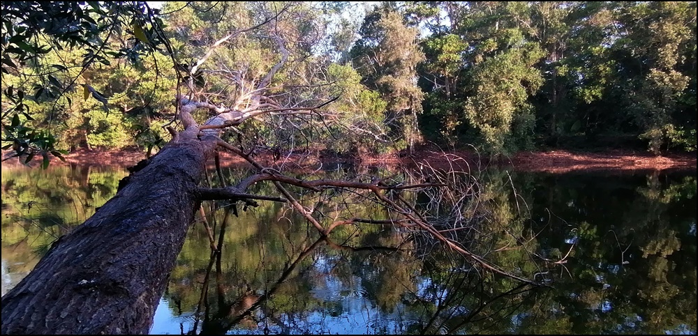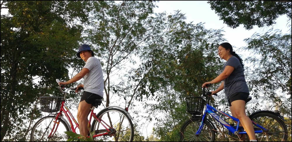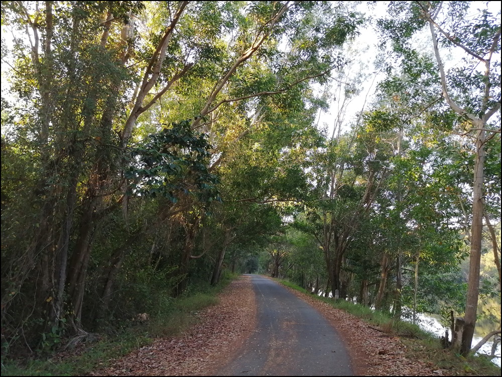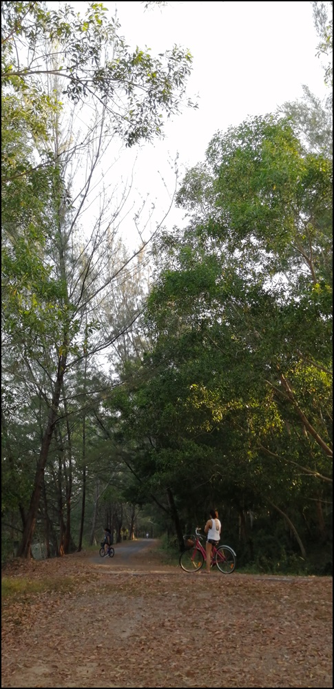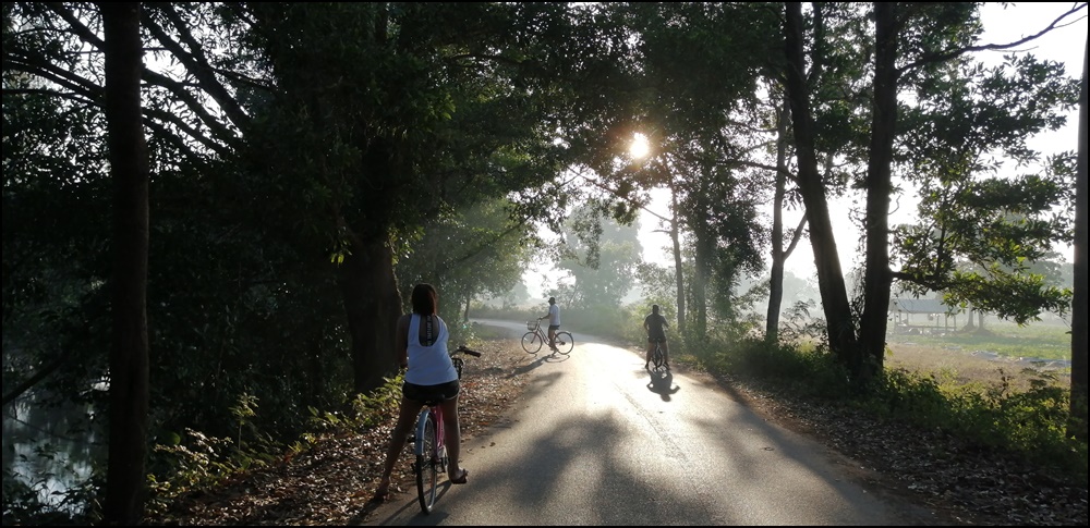 เส้นทางรอบพรุเป็นถนนลาดยาง มีคนมาวิ่งออกกำลังกายประปราย ร่มรื่นไปด้วยต้นไม้ใหญ่ เช้าๆ บรรยากาศน้ำนิ่งๆ ที่มีไอน้ำลอยกรุ่นๆ กระจายอยู่บนผิว ประกอบกับแสงแดดอ่อนอุ่นยามเช้า เราคิดว่าเราควรแนะนำให้ถ้าใครสักคนได้มีโอกาสไปพักย่างหาดไม้ขาว ควรแวะไปขี่จักรยานและถ่ายรูปกับแดดเช้าที่นี่ เรารับรถจักรยานตอน 7 โมงเช้า และเข้าไปที่แรมเพื่อคืนจักรยานและทานอาหารเช้าราว 8 โมงเศษ