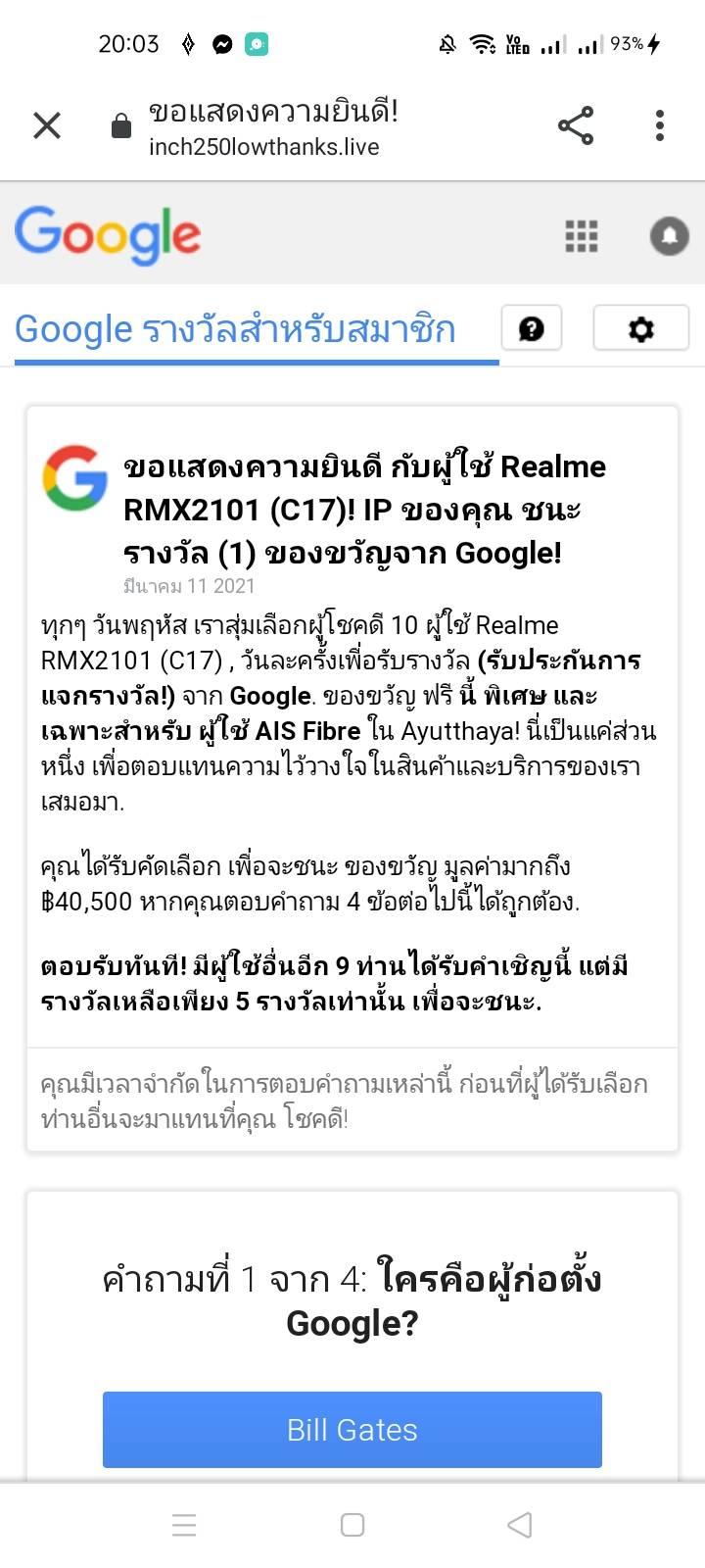 เว็ปนึงมันก็เด้งไปเว็ปอื่นที่บอกว่าตัวเองคือGoogleมั้ง แล้วก็บอกกับผมว่า