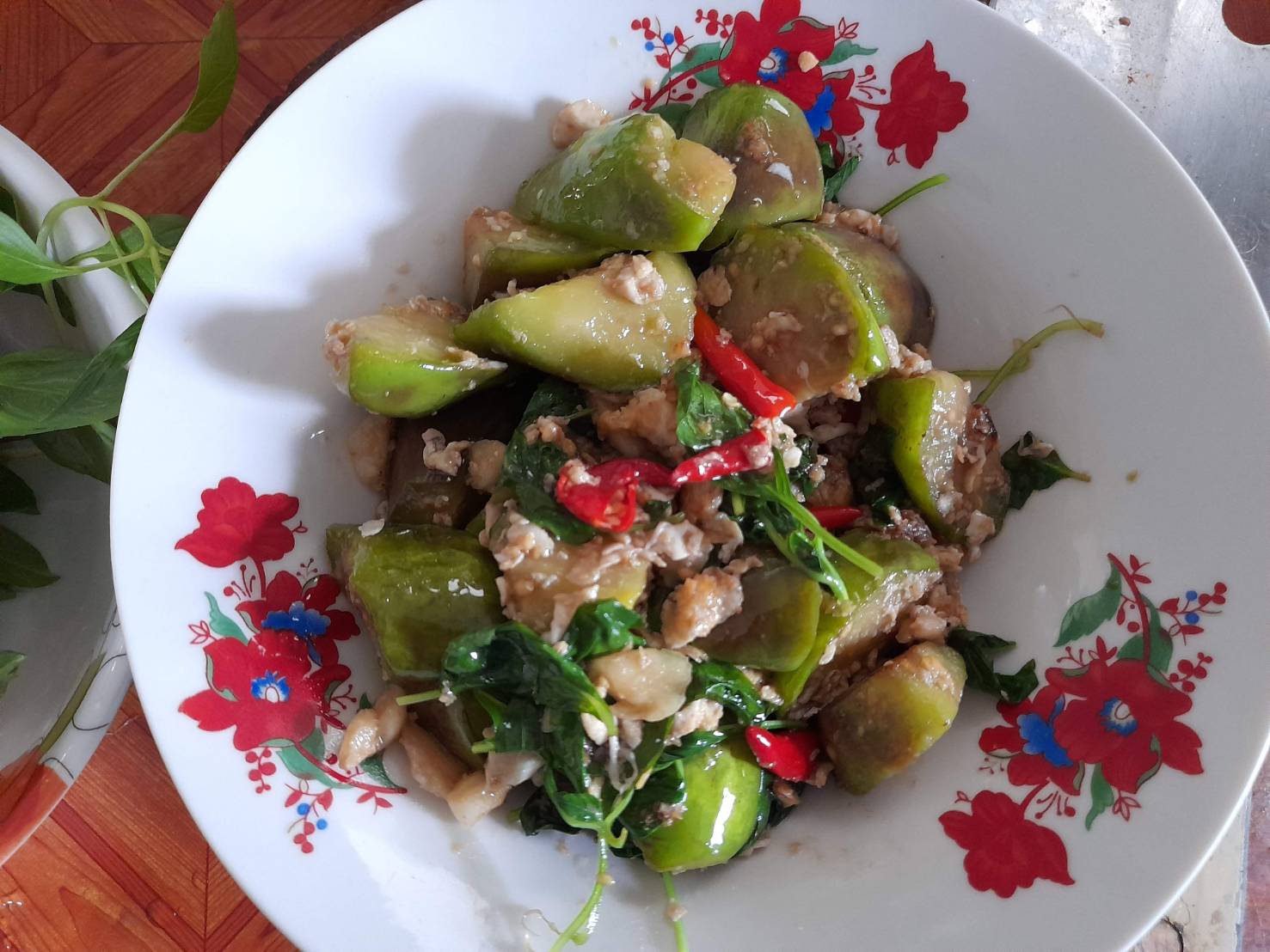 ...เมนูที่สอง มะเขือยาวขยี้ไข่ ไม่มีเนื้อสัตว์ มีแค่ไหนใส่แค่นั้นตามอัตภาพ...