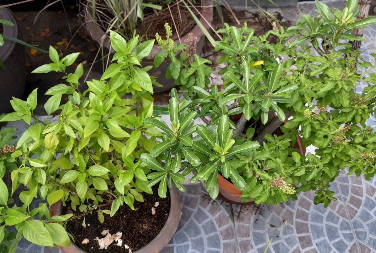 ...แม่เอากิ่ง โหระพากับกะเพราไปปักไว้ตามไม้กระถาง ก็งามดี...