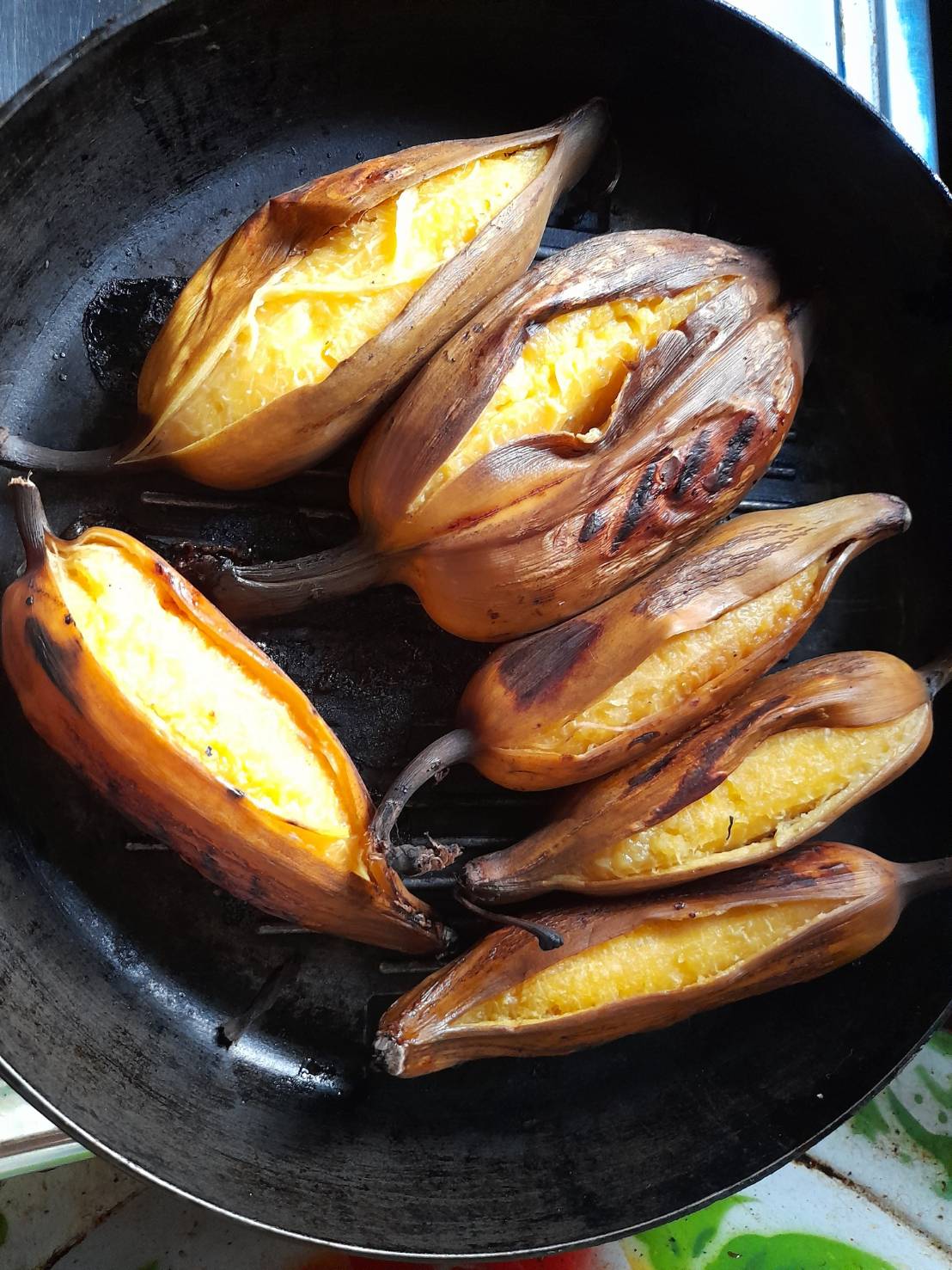 ...เมนูแถม กล้วยหักมุกปิ้ง ปลูกไว้หนึ่งต้น ใช่เวลาเกือบปีกว่าจะได้กินลูก ตอนนี้แตกหน่อเป็นหลายต้นแล้ว ออกลูกมาให้กินทุกปี...