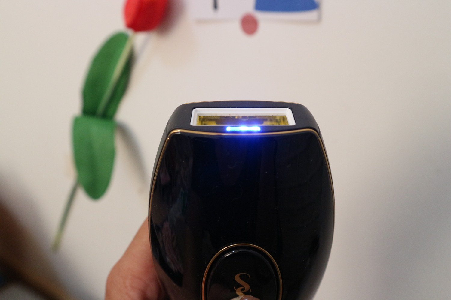 เสียบปลั๊กก็จะมีไฟขึ้นเป็นสีน้ำเงินและมีเสียงพัดลมจ้า เลือกโหมดที่เราต้องการก่อนน้า เริ่มใช้งานโดยนำเครื่องไปแนบกับผิว ต่อไปกดปุ่มจะมีไฟเหมือนแสงแฟลชออกมา แค่นี้เอง ง่ายมากกกกก เพื่อนๆ อย่าลืมโกนขนก่อนนะคะ ไม่อย่างนั้นจะมีกลิ่นขนไหม้มานะจ้ะ