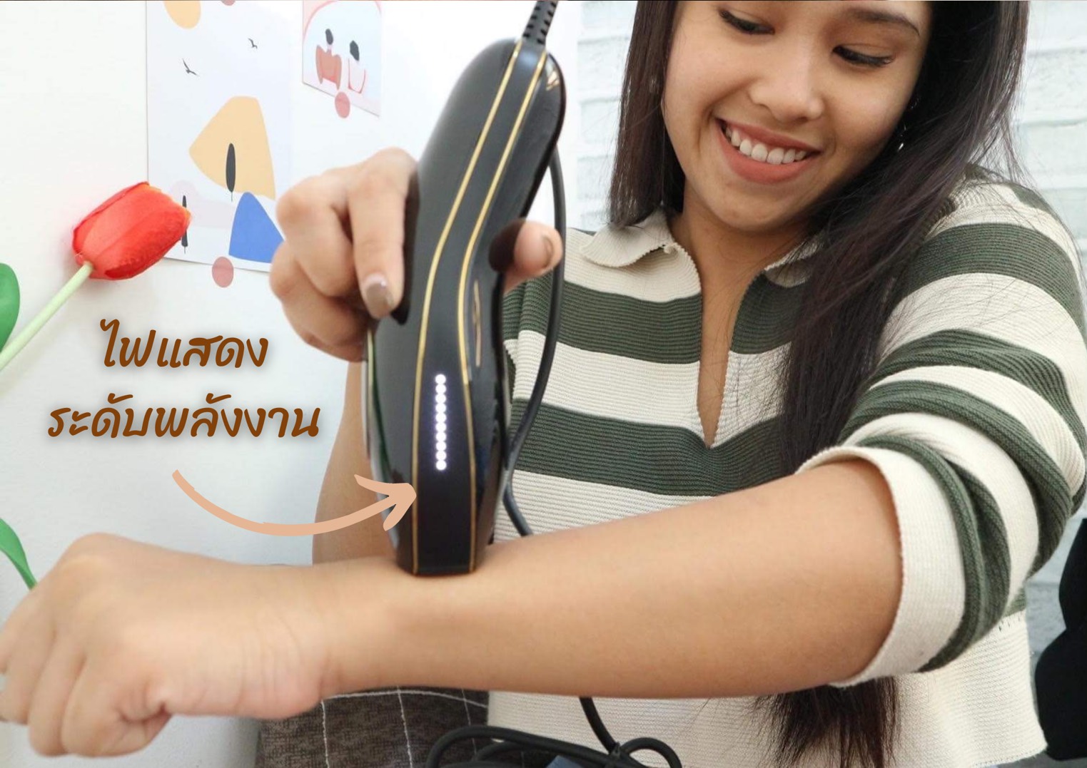 “ทำแบบนี้ไปเรื่อยๆ ห้ามทำซ้ำบริเวณที่เรายิงไปแล้วนะคะ ห้ามใช้ครีมหรือเจลกับเครื่องนี้นะคะทุกคนนนนนนน”