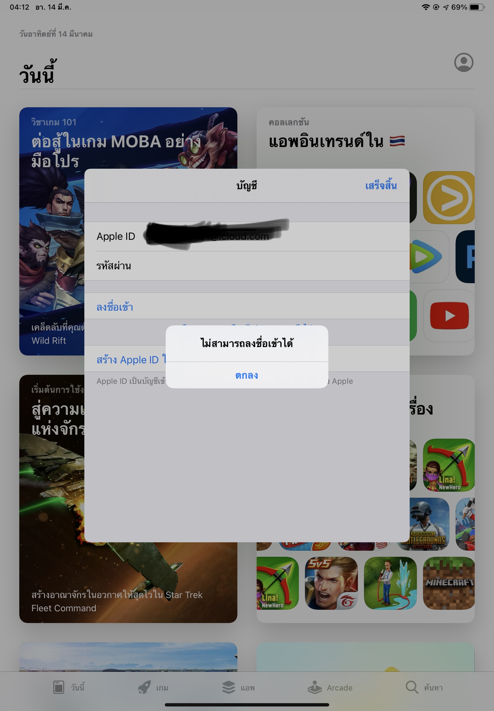 ล็อคอิน App Store ใน IPad ไม่ได้