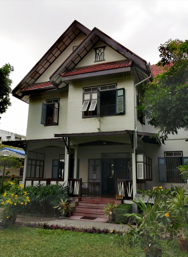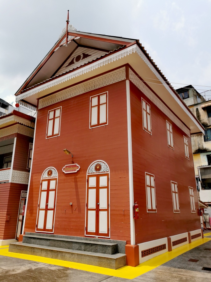 น้องไกด์ประจำกลุ่มก็พาไปที่แรกครับ วัดสวนพลู กุฏิสงฆ์ของวัดนี้เป็นเรือนไม้สองชั้นทาด้วยแดงครับ (ก่อนหน้านี้เป็นสีเหลืองคาดลายสีน้ำตาลแดงครับ) ที่มีความสวยงามไม่เหมือนใครเรียกกันว่า กุฏิขนมปังขิง ครับ