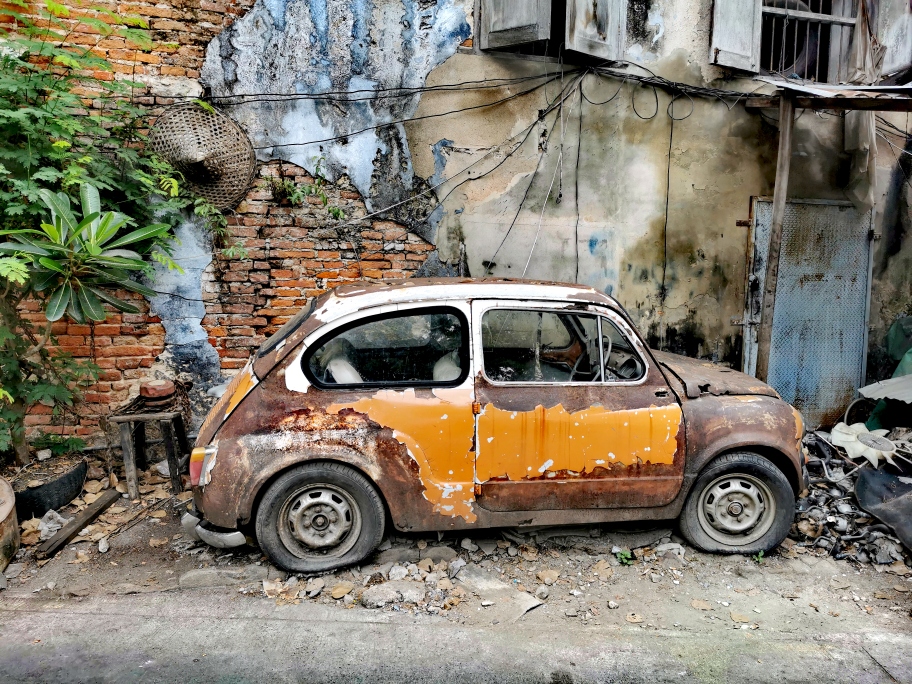 อีกหนึ่งแลนด์มาร์คของ E-Scooter Tour ก็คือถ่ายรูปกับรถเก่าคันนี้ครับ ^^