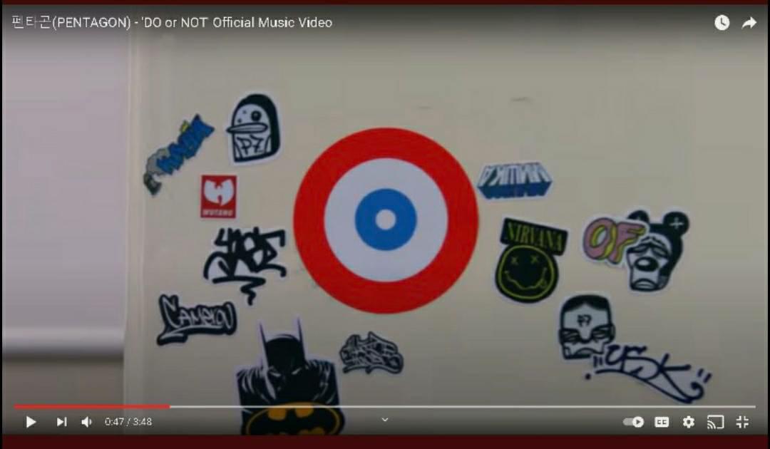 ใน MV Do or Not ของ Pentagon มีฉากหนึ่งที่เป็นคล้ายๆกับ Sticker แปะฝาผนังในวินาทีที่ 37 ของ MV