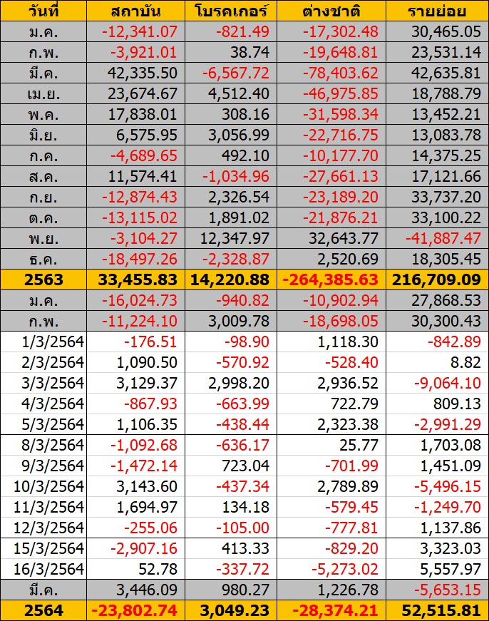 Sinthorn Summary 16/3/2564 : ต่างชาติขายสุทธิ -5,273.02 ลบ.