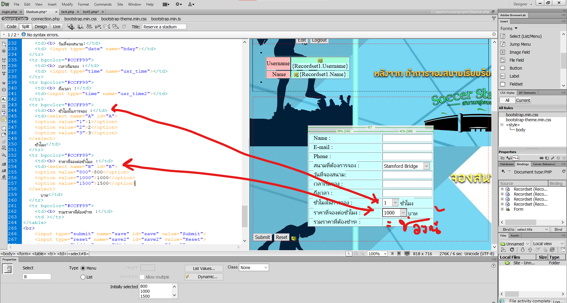 ต้องการรับค่าข้อมูลคำนวณ เเบบเอามาคูณกัน ภาษา php เเปบในภาพอะครับ ชั่วโมงการจอง * ราคาจอง