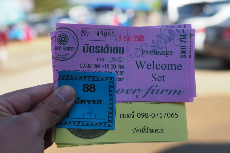 บัตรคิวนี้ มี 3 สีนะคะ สีแรกไว้รอเรียกคิวขึ้นรถสองแถวต่อไปยังสวนดอกไม้