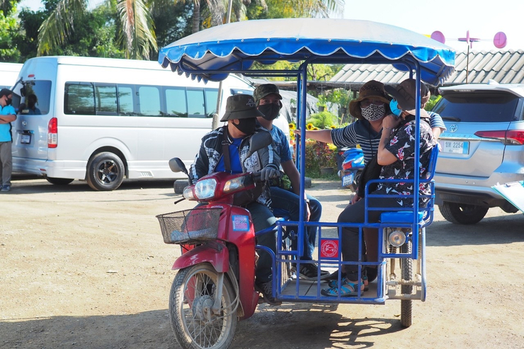 นั่งรถมอไซค์พ่วงข้างแบบนี้ เข้าไปอีกสัก 5-10 นาทีก็จะถึง I love flower farm
