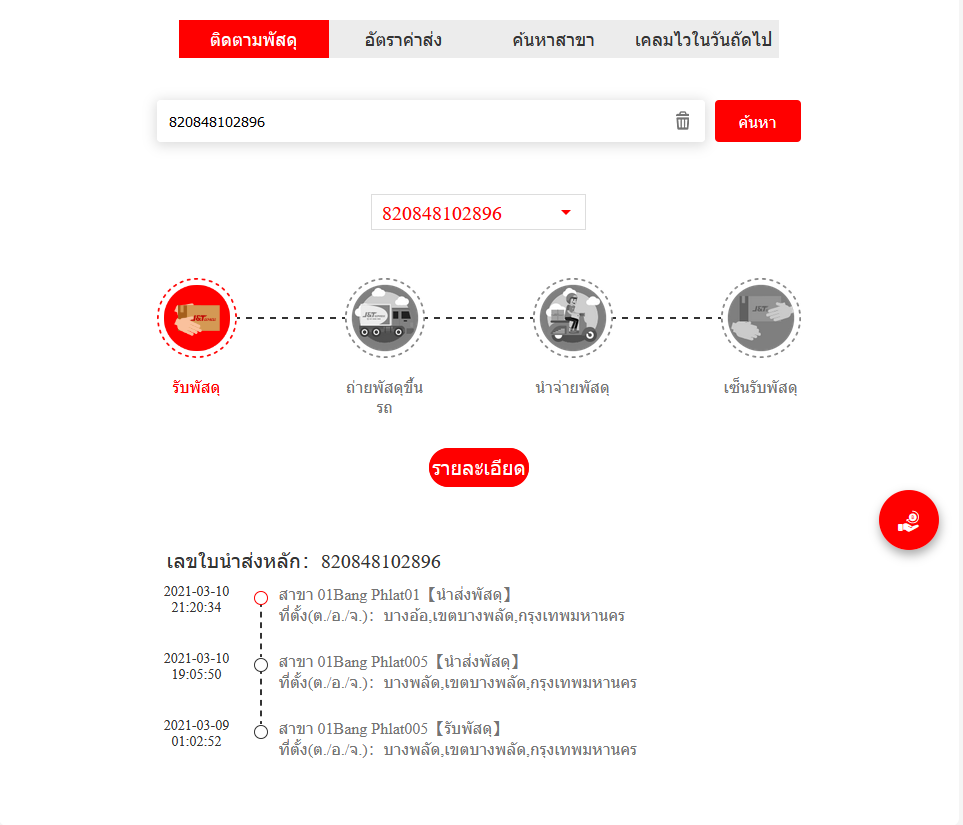 ส่งพัสดุผ่าน J&T express เมื่อวันที่ 9/03/2021 จนถึงตอนนี้มี 5 รายการไม่ถึงมือผู้รับ