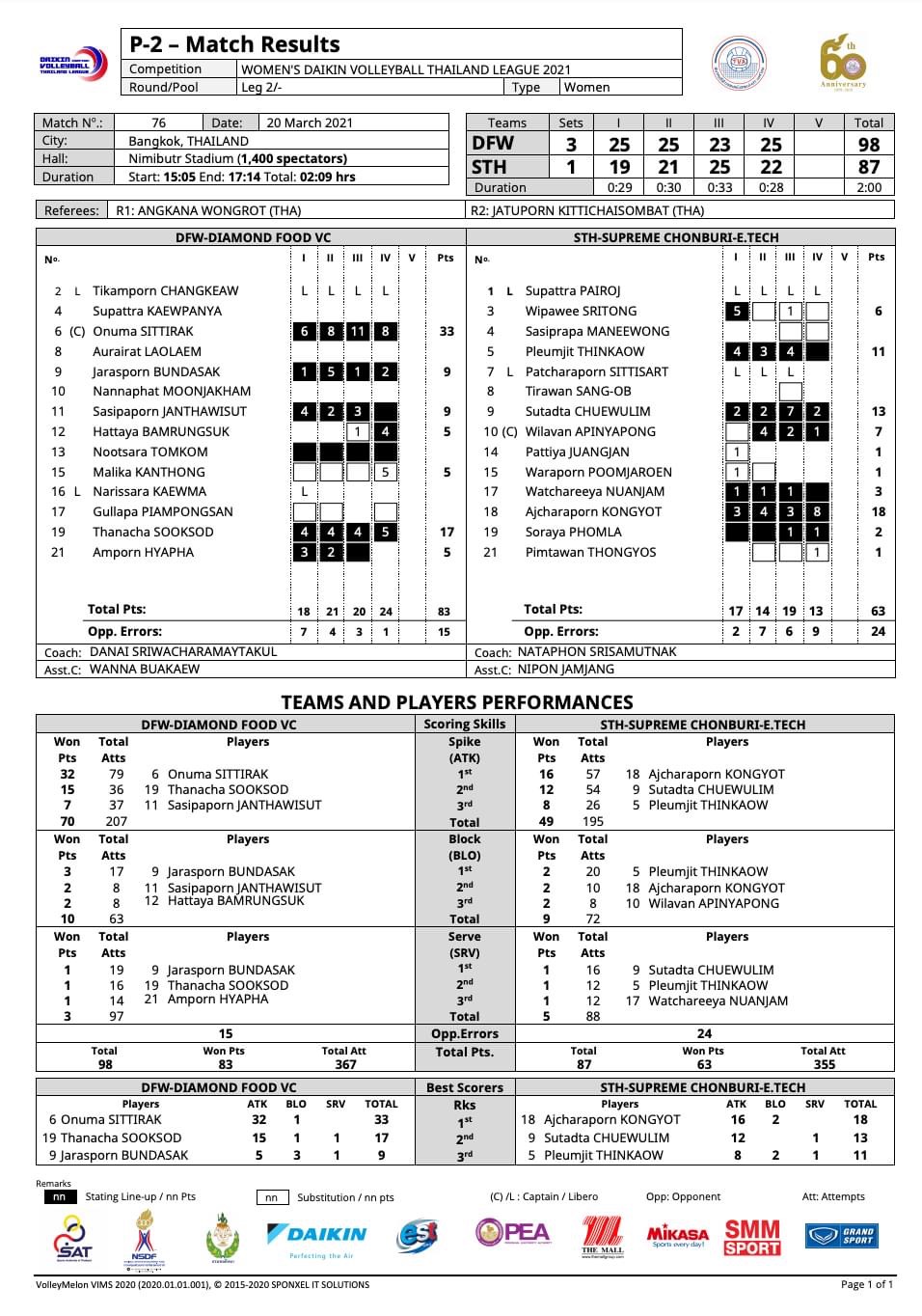 หัวเสา น้องบุ๋มบิ๋ม พี่อร บีหลัง เพื่อนเพียว เซ็ต พี่โสรยา ลิบ พี่บะหมี่ บอลเร็ว พี่เสือหน่อง พี่เตย mvp น้องบุ๋มบิ๋ม เพราะรู้สึกว่าน้องแบกทีมมากๆ ขณะที่เพียวยังมีปูกับฟรีแมนช่วยทำแต้มได้บ้าง บอลแรกน้