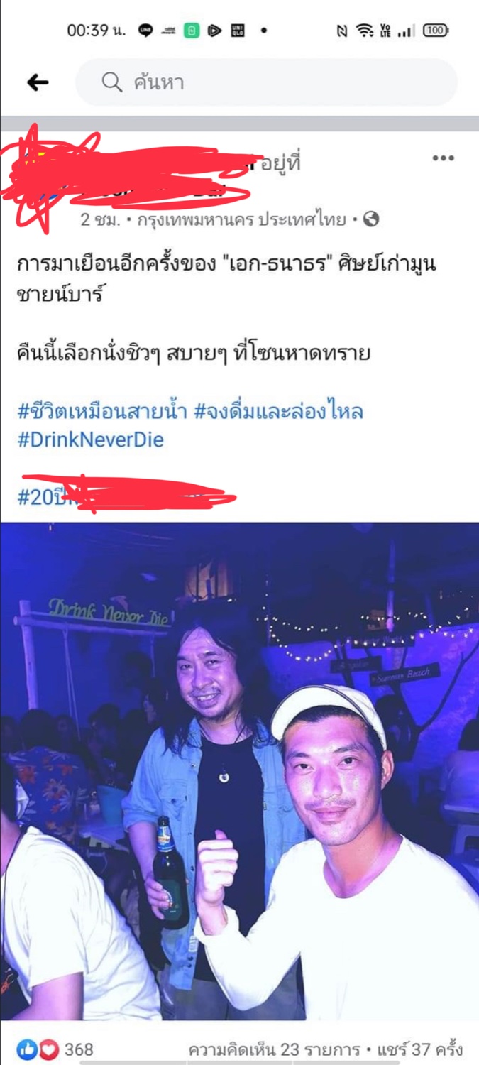 ร้านเหล้าแห่งนึง โพสต์ ว่า ธร ไปนั่งกินครับ