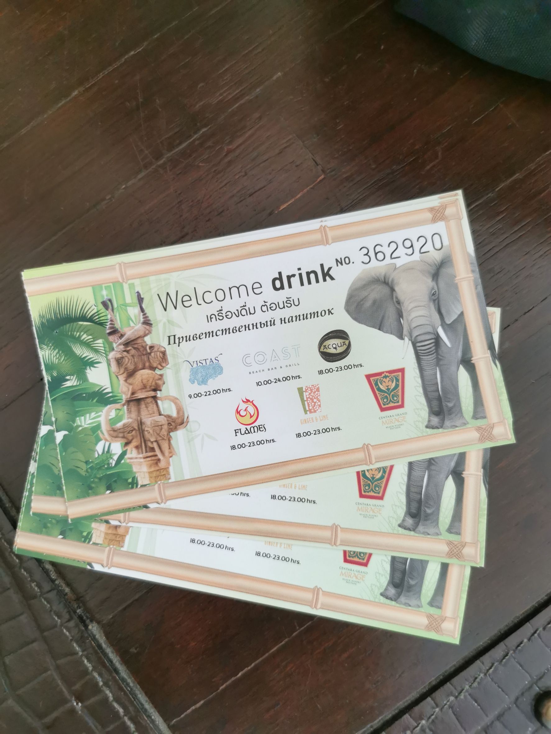 บัตรสำหรับแลก Welcome drink เป็นน้ำมะนาวอร่อยชื่นใจ