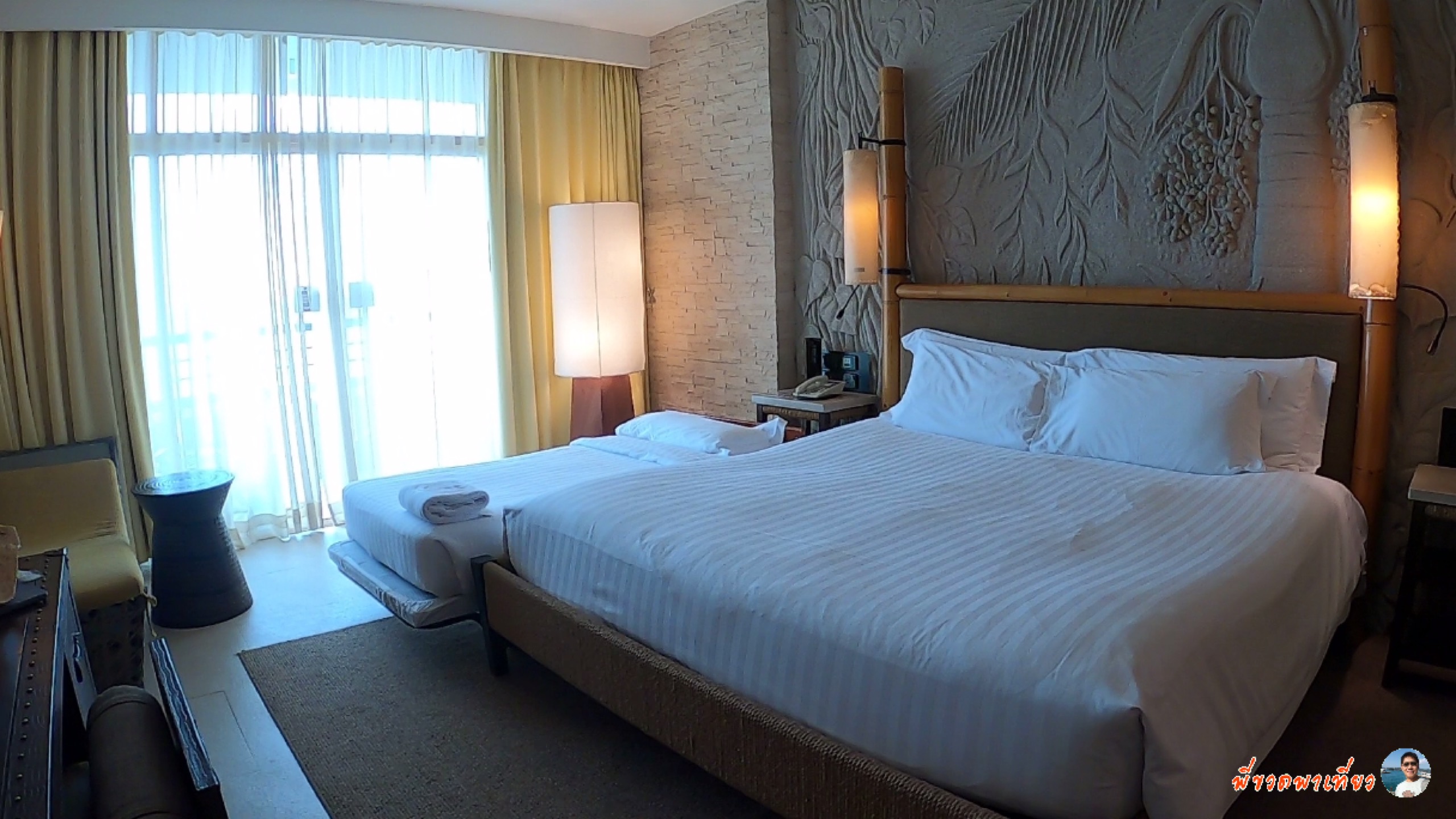 เราจองไปตอนแรกก่อน 2 ห้อง 6 คน แต่เราอยากได้ห้องคอนแนค เลยจองเป็นแบบดีลักซ์โอเชี่ยนเฟสซิ่งพร้อมเตียงเสริม ราคา 4600 บาท กับ ดีลักซ์โอเชี่ยนแฟมิลี่ ราคา 5000 บาท รวมอาหารเช้า 6 คน ซึ่งจะเป็นวิวทะเลทุกห้อง แต่ตอนหลังหลานๆอยากไปด้วยจึงจองเพิ่มไปอีก 1 ห้อง มาถึงเช็คอินเสร็จ จะได้บัตรสำหรับไปแลกผ้าเช็ดตัวเวลาเบ่นน้ำที่สระว่ายน้ำ