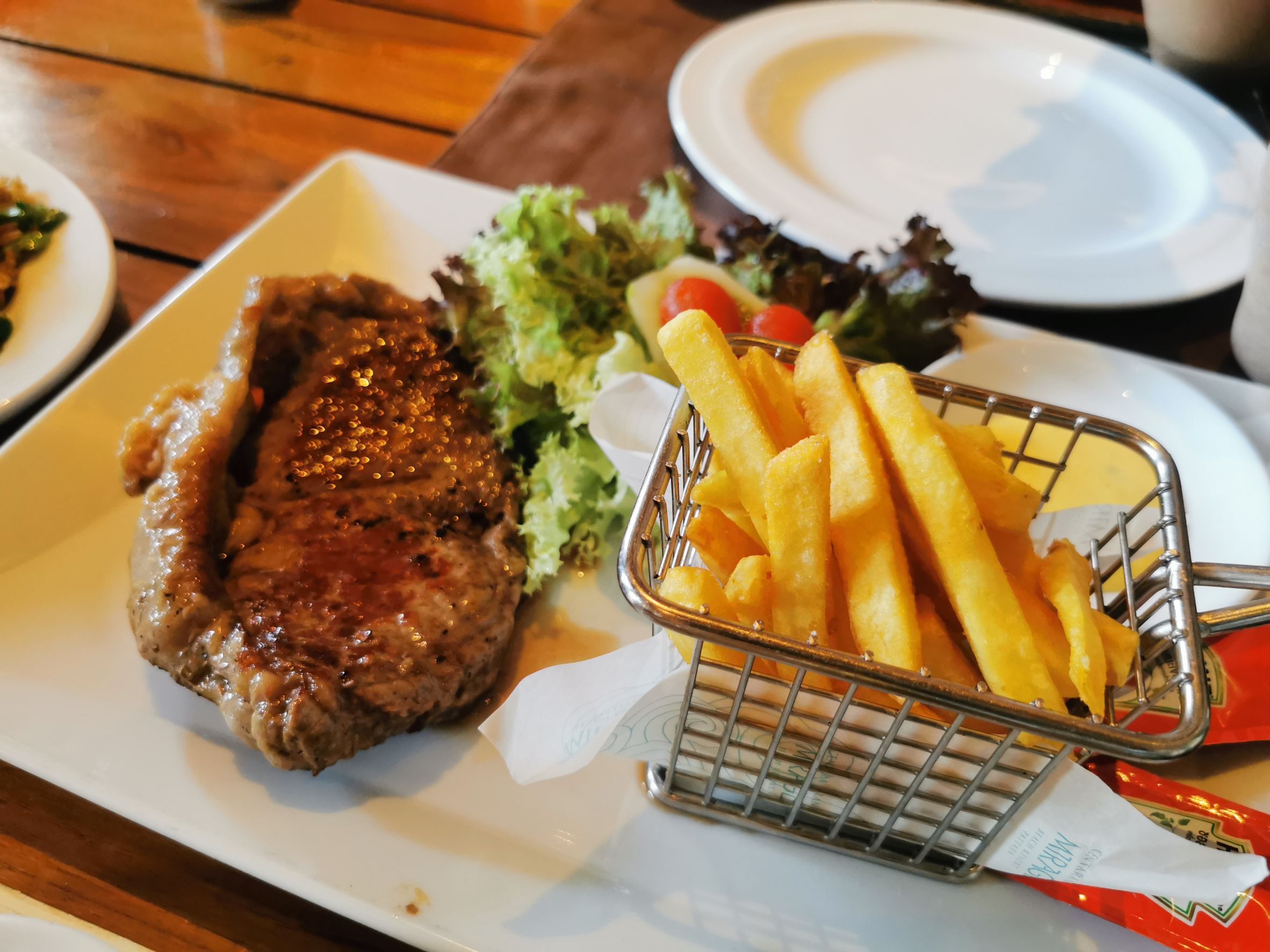 สเต๊คเนื้อ อาหารที่นี่จานใหญ่มาก และอร่อบแทบจะทุกอย่าง ความจริงเราสั่งมาเยอะกว่านี้ค่ะ แต่ถ่ายรูปมาไม่หมด