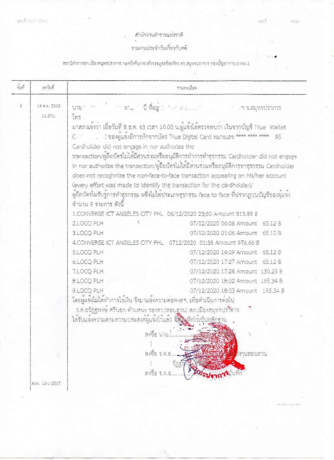 ไปจ่ายเงินที่ทรูโดย โดยบัตร TrueYou MasterCard แล้วโดน เอาบัตรไปใช้งานโดนที่บัตรก็อยู่กับเราแถมไม่ได้เป็นคนทำรายการ มีการทำรายการ9รายการโดนที่ไม่ได้ยุ่งด้วยเลย แจ้งความแล้วดันบอกให้ไปติดต่อร้านค้าเอาเอง ทั้งที่คินเงินมาให้5รายการแต่อีก4รายการดันให้ไปติดต่อเอง แล้วผมจะไปแจ้งความทำไมเนี่ยถ้าติดต่อเองได้