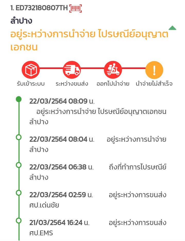 เนื่องจากเช็คสถานะพัสดุก็เขียนว่านำจ่ายไม่สำเร็จ เราต้องทำไงค่ะ รหัสพัสดุEB477496159TH