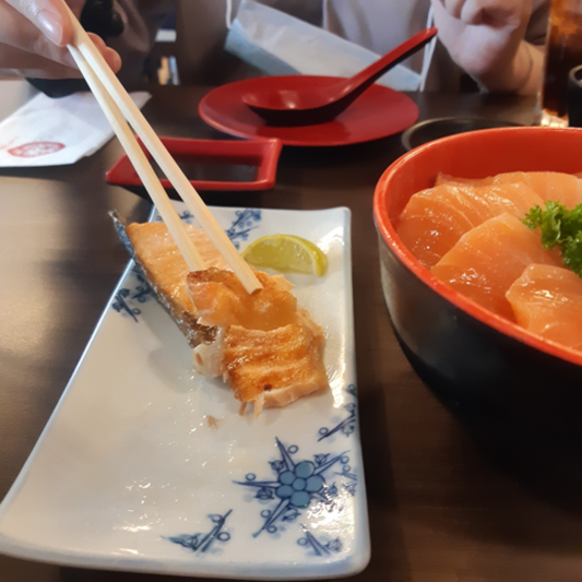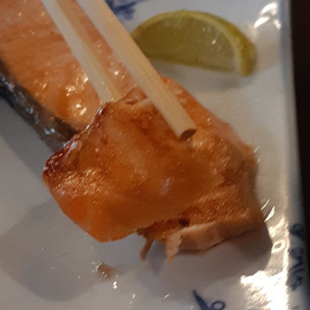 แซลมอนเผาคือหนึ่งสิ่งที่ขาดไม่ได้เมื่อมาที่ร้าน