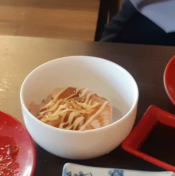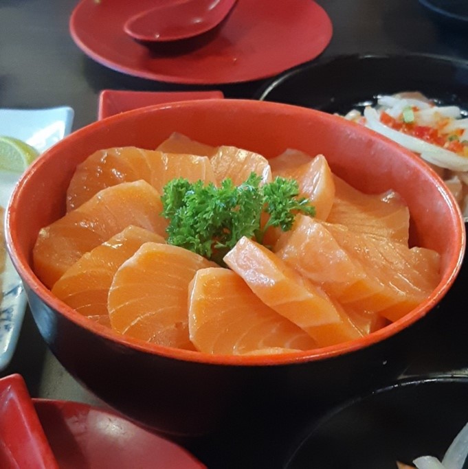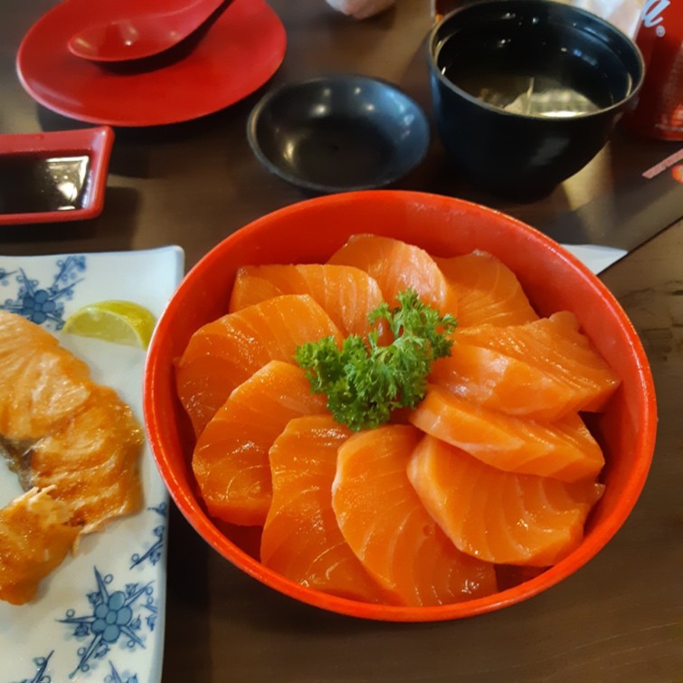 เมนูแรกแน่นอนว่าใครไม่สั่งถือว่าพลาดอย่างแรงงงนิ กับ “แซลมอน” ซาชิมิที่แบบว่าชิ้นใหญ่โอเคมว้ากกกก สีสวย ฉ่ำเห้นแล้วน้ำลายไหลตลอด ซึ่งเป้นแซลมอนที่เราโอเคมากกกก คุ้มค่าคุ้มราคาที่สุด (เราซื้อผ่านแอปตุนไว้มากกว่าห้าใบ ก็เลยถือราคาได้ประมาณ 240 รวมน้ำแล้ว) สำคัญคือที่นี่มีให้เลือกหลายไซส์ของขนาดชาม อย่างเราไปก้เลือกไซส์เล็กก่อนแต่ถ้าไม่อิ่มไม่พอก็สั่งได้เรื่อยๆเลย ดีเวอออออออ