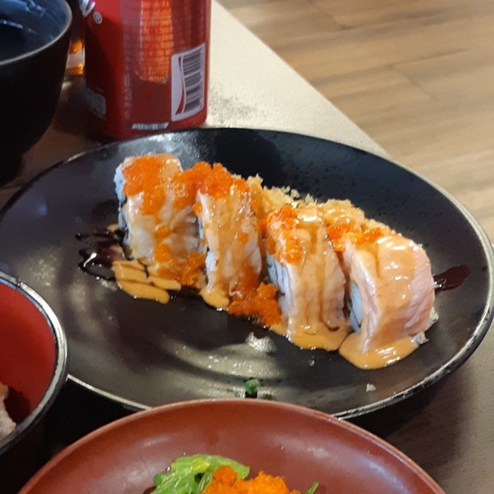มาถึงบุฟเฟต์อาหารญี่ปุ่นแล้วไม่มีซูชิจะเรียกว่ามาได้ยังไง คราวนี้เราสั่งเป็นซูชิแซลมอนมิโซะ ซึงแน่นอนว่าซูชิที่ดารุมะ ชิ้นใหญ่ข้าวเยอะคำโตจริง ถ้าใครไม่อยากรีบอิ่มแนะนำว่ากินหลังๆจะดีที่สุดค่า อีกหนึ่งอย่างก้คือแซลมอนสไปซี่โรล เป้นโรลที่อัดแน่นไส้มาเต้มที่ข้าวเยอะเช่นเคย พิเศษคือซอสอร่อยมาก นัวลิ้นสุดๆ
